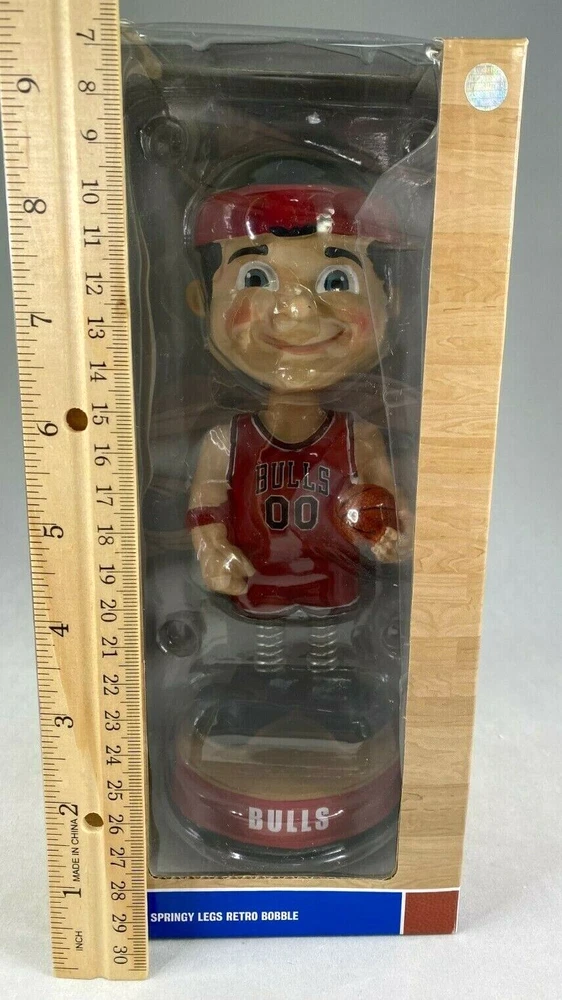 Chicago Bulls Retro Bobblehead Springy Legs Version 8 Inch New NBA Basketball CHICAGO BULLS RETRO SPRINGY LEGS BOBBLEHEAD OFFICIALLY LICENSED STANDS ABOUT 8 INCHES TALL MADE FROM RESIN/CERAMIC MATERIAL BULLS FANS THIS IS FOR YOU! HAND CRAFTED AND HAND PAINTED THE FIGURE IS IN GREAT SHAPE, NO SIGNS OF ISSUES ✨✨✨✨ BOX IS NEW BUT HAS A FEW ISSUES THE PLASTIC IS NOT PERFECT, HAS SOME CREASES SHAPE PLEASE SEE PICS WOULD MAKE A COOL GIFT FOR A BULLS FAN ADD TO YOUR NBA BOBBLEHEAD COLLECTION ✨✨✨✨✨✨✨✨✨✨✨ The VinKris Collection is committed to delivering a great experience! We will ship to you with the greatest of care All items are shipped in sturdy boxes We use packing materials appropriate for the product to help ensure safe delivery Shipments to the United States and Protectorates are handled via USPS International shipments will ship via Ebay's International Shipping Program All packages are shipped within 1 business day of payment We ship daily Monday through Saturday Worry free purchases, we stand behind everything we sell with free 30 day returns We have thousands of happy customers and our goal is 100% customer satisfaction We are happy to answer any questions
