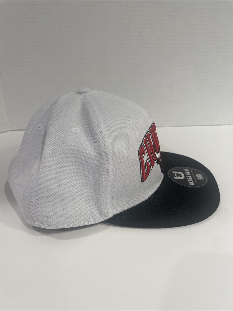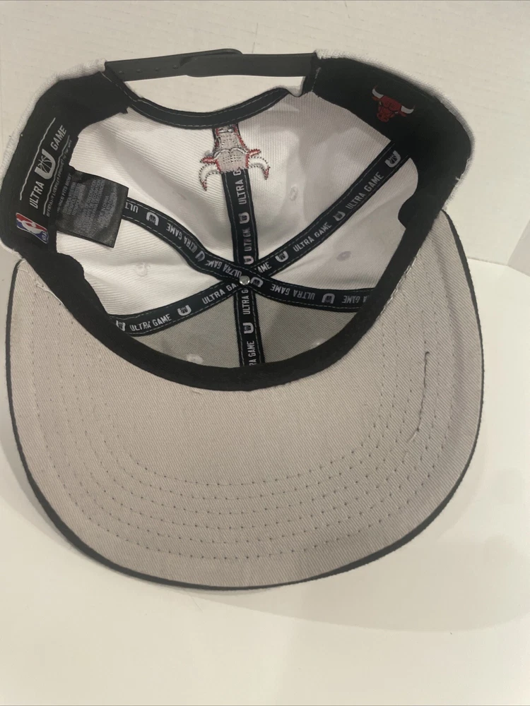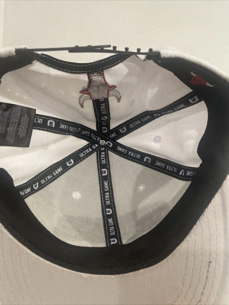 Show off your love for the Chicago Bulls with this Ultra GAME snap back hat. The classic white and black color combination is perfect for any fan of the National Basketball Association (NBA). This hat is designed for unisex adults and features the iconic Chicago Bulls team logo. Crafted in China, this hat is made with high-quality materials to ensure durability and comfort. The snapback size allows for a perfect fit every time. Perfect for game day or everyday wear, this hat is a must-have for any true Bulls fan.