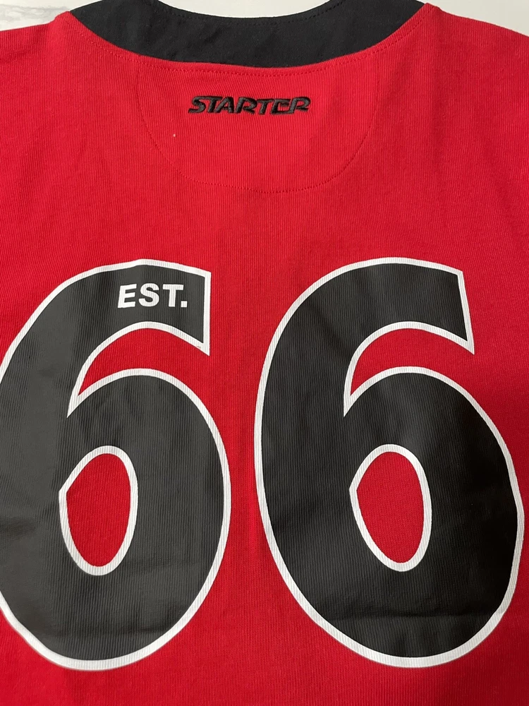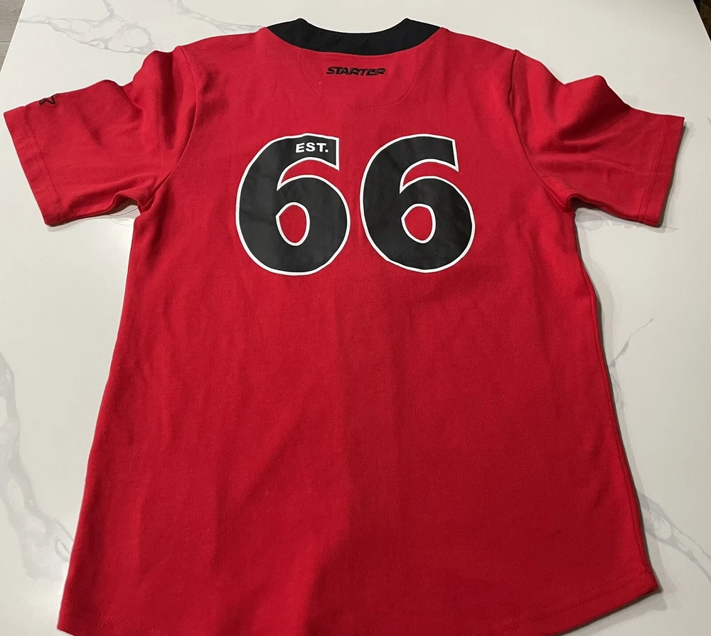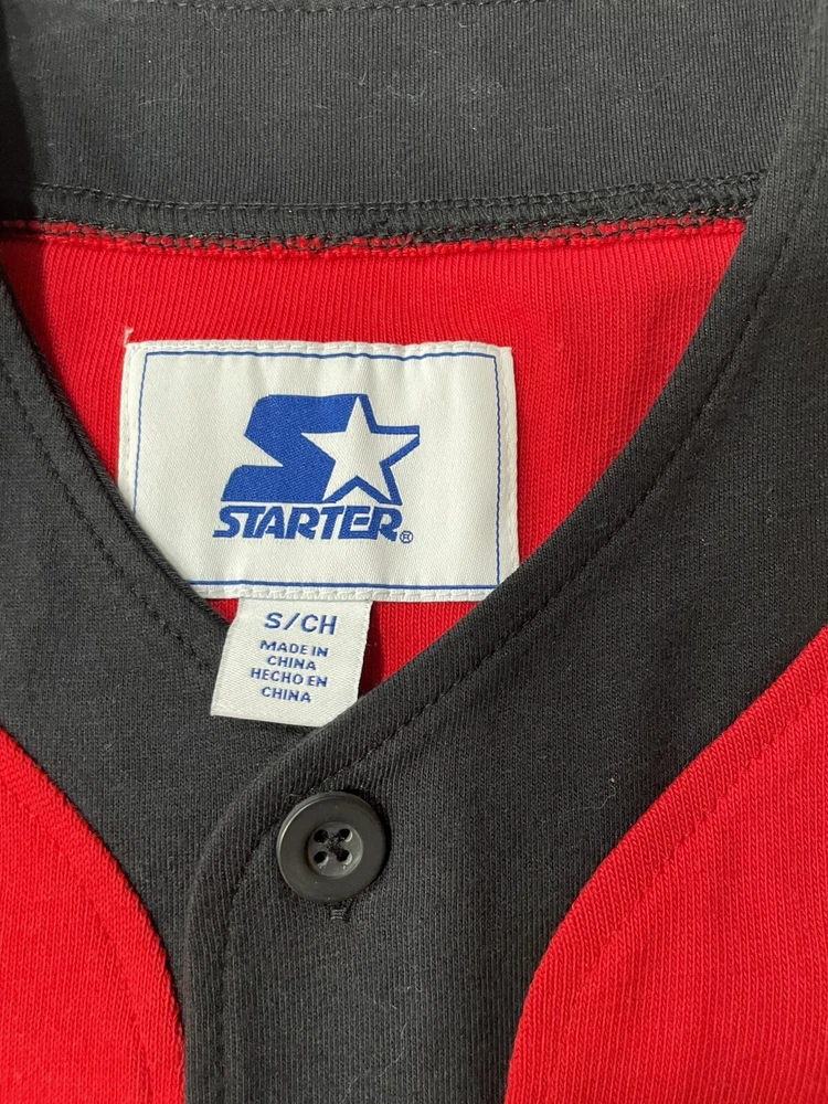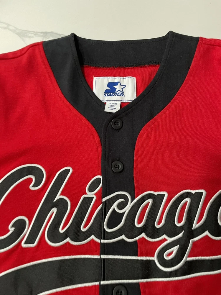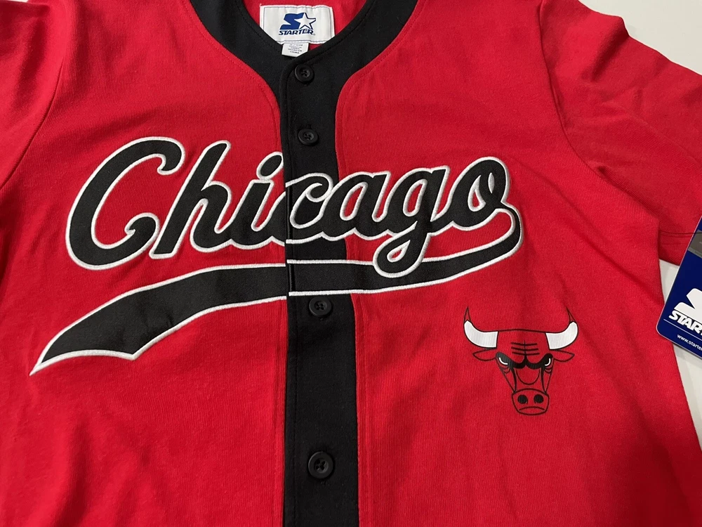Elevate your game-day ensemble with the Chicago Bulls Starter Men's Baseball Style Jersey. A true fan staple, this small-sized jersey in classic red is a stylish nod to one of basketball's most iconic teams. The Bulls' legacy is proudly displayed, ensuring you look the part for both game viewing and casual wear. Crafted for comfort and designed for durability, this officially licensed NBA apparel is a must-have for any Bulls supporter. The jersey features the high-quality materials and iconic Starter branding, making it an excellent addition to any sports enthusiast's collection. Whether you're at the arena or on the streets, show off your Bulls pride with this versatile and fashionable piece.