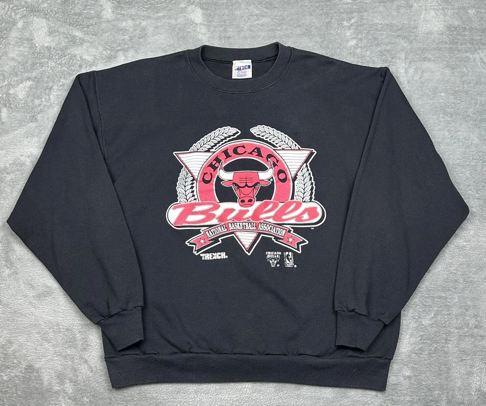 Vintage 90s Chicago Bulls Sweatshirt Mens XL Black NBA Trench Made in USA Some fading and logo cracking due to wash wear over time but in good pre-owned condition and laundered. Please see measurements in photos. I ship next business day, but sometimes same business day and Saturday if order is paid for early enough. Please let me know if you have any questions. I am open to offers!! Feel free to look at other items in my store! Thanks!