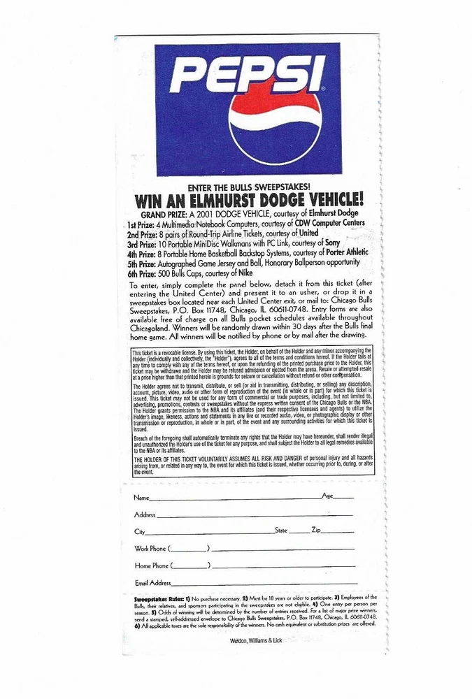 Chicago Bulls vs Charlotte Hornets Unused Basketball Ticket from 3/23/2001