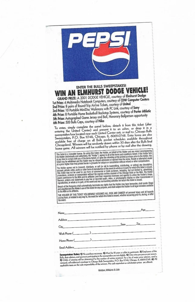 Chicago Bulls vs Denver Nuggets Unused Basketball Ticket From October 11, 2000 Here is 1 unused Chicago Bulls vs Denver Nuggets unused Basketball Ticket from October 1, 2000. The game took place at The United Center in Chicago, Illinois. The ticket is in good condition and would make an excellent addition to your collection. Payment Payment is due within 24 hours of sale. Shipping Your item will be shipped within 24 hours of receipt of payment via US Mail. Terms and Conditions All Sales are final. No Refunds