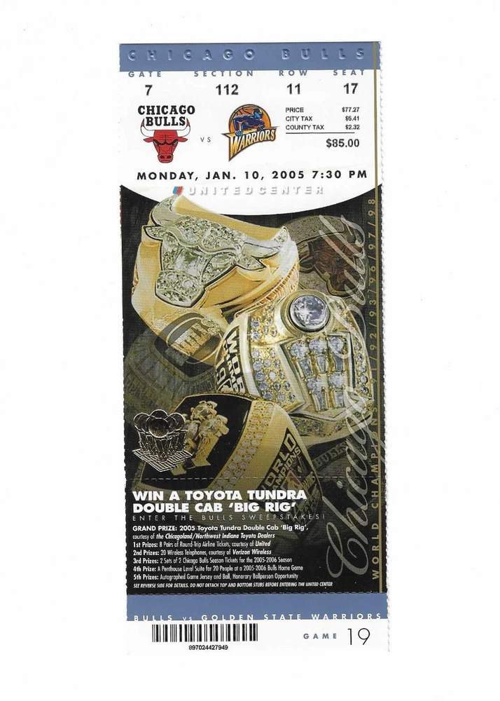 Chicago Bulls vs Golden State Warriors Unused Basketball Ticket from 1/10/2005