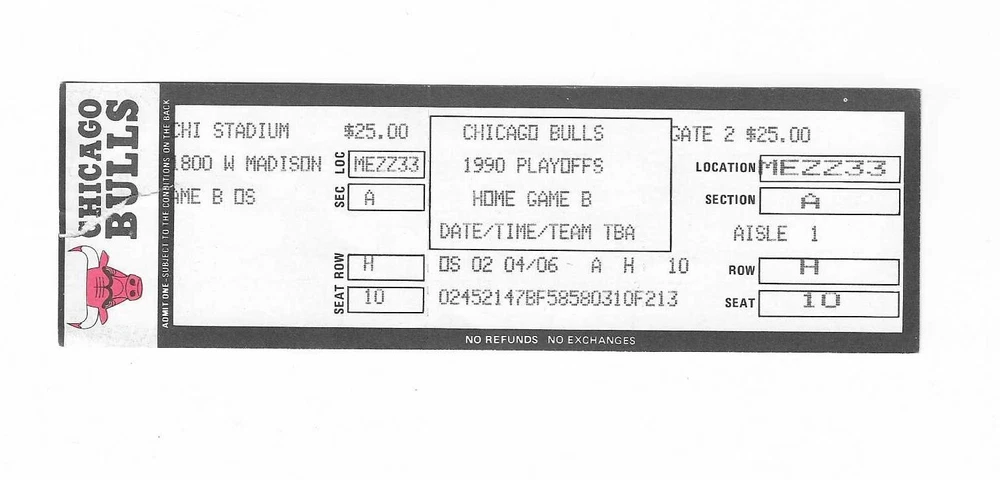 Chicago Bulls vs Milwaukee Bucks Unused Playoff Basketball Ticket From April 29, 1990 Here is 1 unused Chicago Bulls vs Milwaukee Bucks Basketball Ticket from April 29, 1990. The game took place at The Chicago Stadium in Chicago, Illinois. The ticket is in fair condition and would make an excellent addition to your collection. Payment Payment is due within 24 hours of sale. Shipping Your item will be shipped within 24 hours of receipt of payment via US Mail.