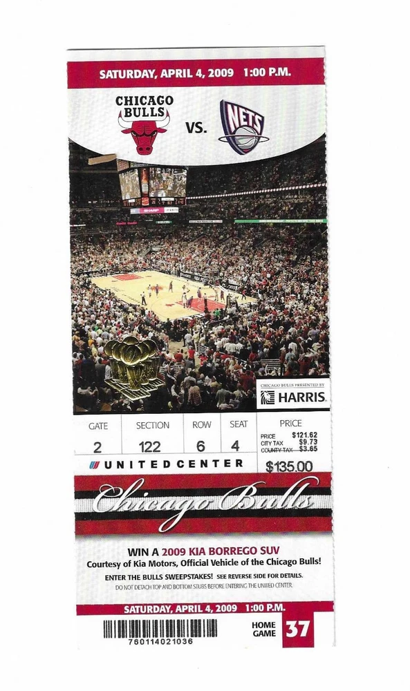 Chicago Bulls vs New Jersey Nets Unused Basketball Ticket from 4/4/2009