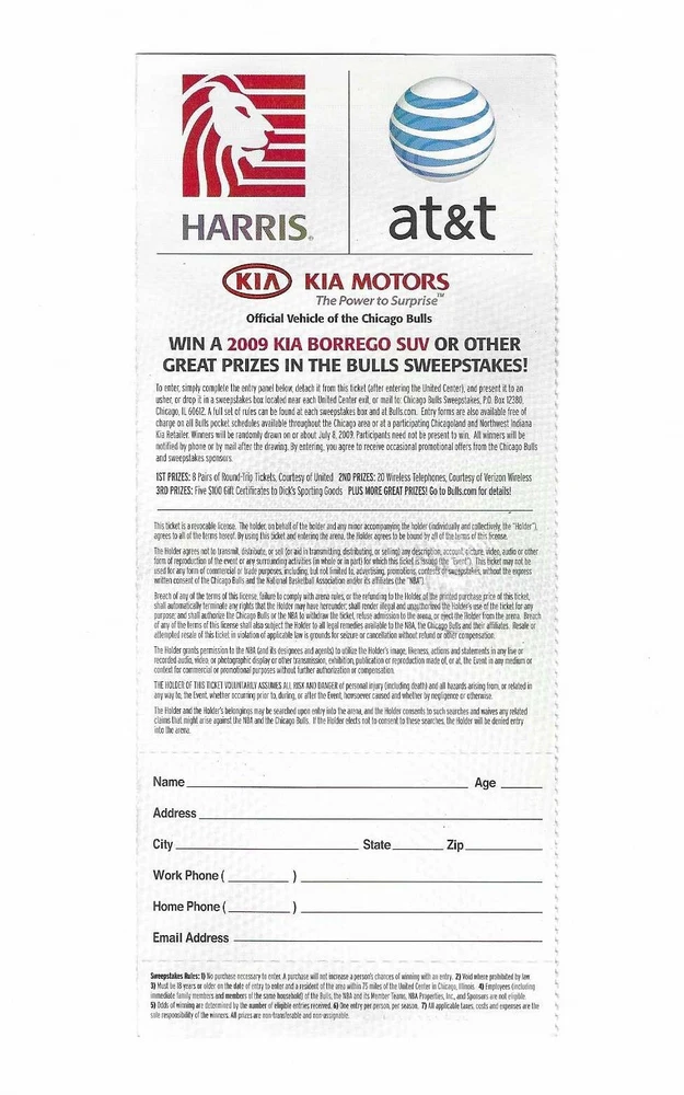 Chicago Bulls vs Portland Trail Blazers Unused Basketball Ticket From January 12, 2009 Here is 1 unused Chicago Bulls vs Portland Trail Blazers unused Basketball Ticket from January 12, 2009. The game took place at The United Center in Chicago, Illinois. The ticket is in good condition and would make an excellent addition to your collection. Payment Payment is due within 24 hours of sale. Shipping Your item will be shipped within 24 hours of receipt of payment via US Mail. Terms and Conditions All Sales are final. No Refunds
