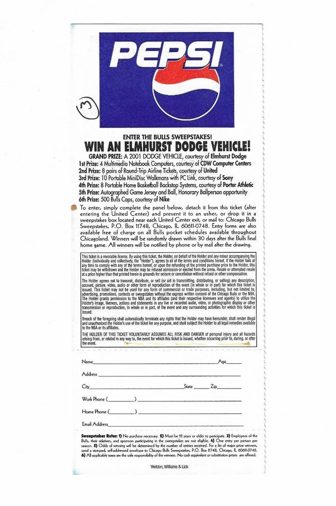 Chicago Bulls vs Vancouver Grizzlies Unused Basketball Ticket from 2/24/2001