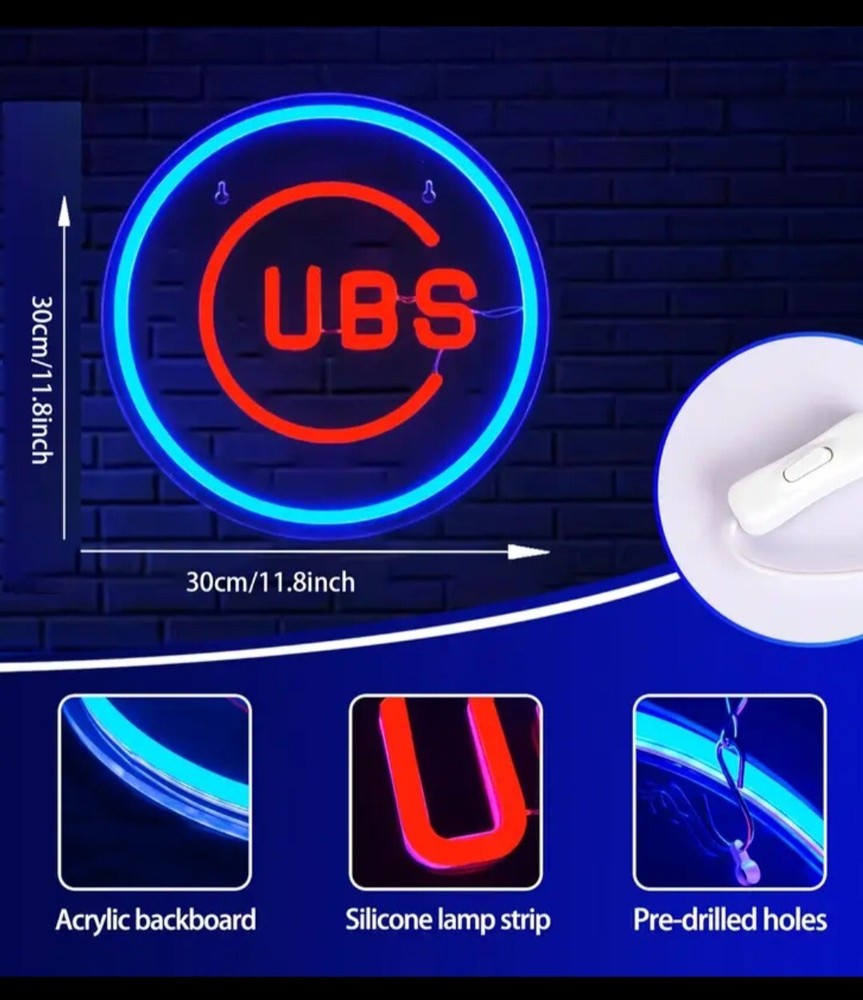 This Listing CUBS Chicago MLB Baseball this is not a licensed item Add some character to your man cave or home bar with these neon/led signs! Choose from a variety of brands including Busch Light, Coors Light, Corona, Blue Moon, and Pabst. These signs are made with acrylic and LED lights, USB powered ensures versitile and a long-lasting bright display. Each unit quantity includes 1 sign with predrilled holes, making it easy for you to hang. And if you can't decide on just one, buy 2 and get 10% off your purchase! Perfect for collectors or anyone looking to add some unique decor to their space. Please see pics for specifics and my other listings. I don't ship Internationally and do not accept returns. CUBS