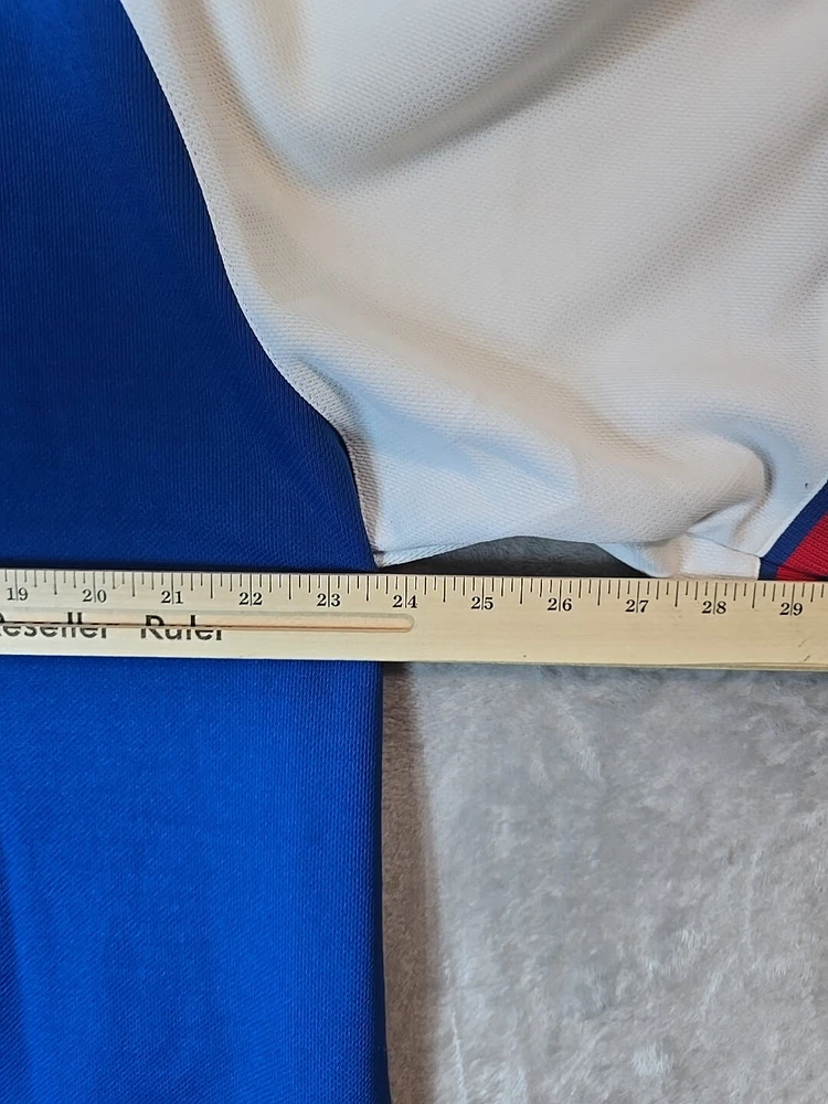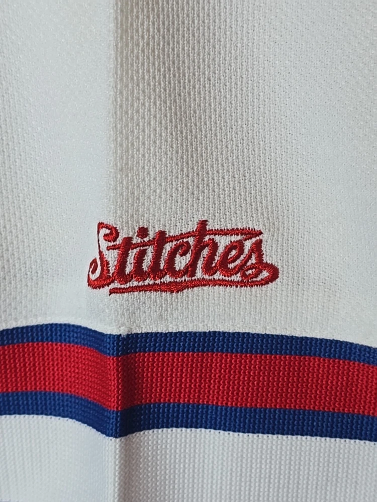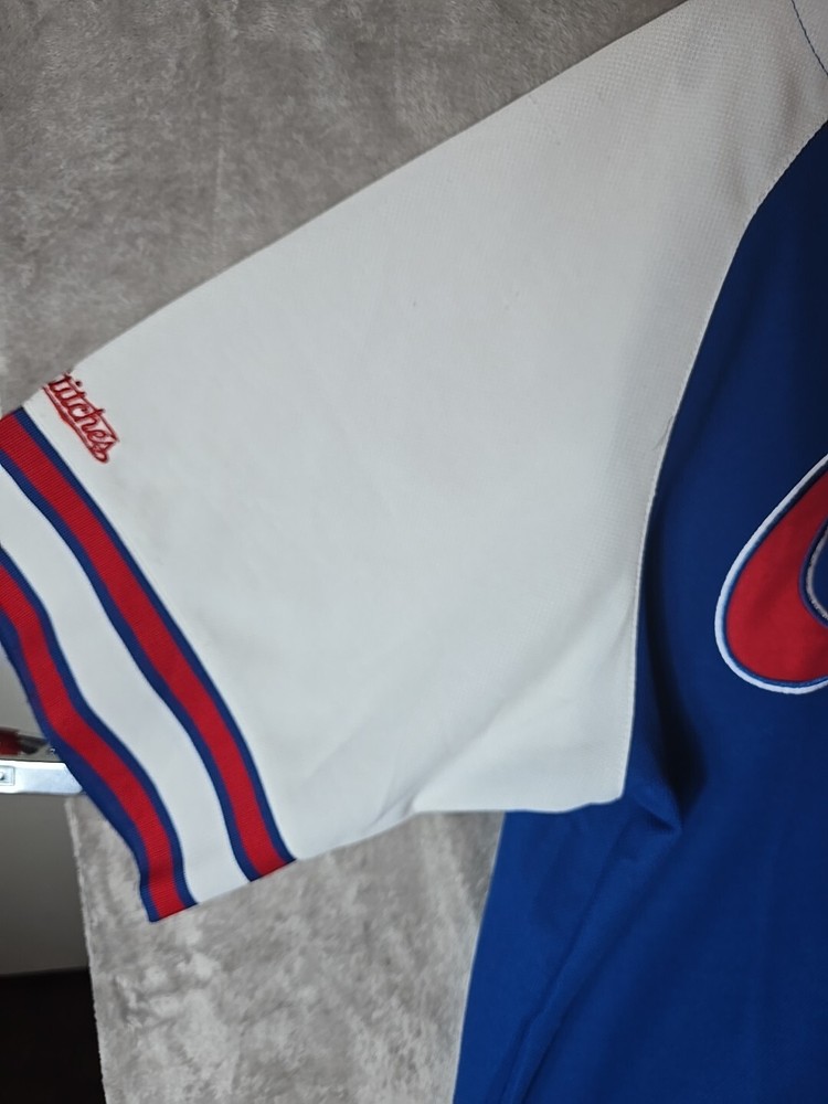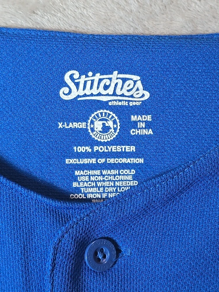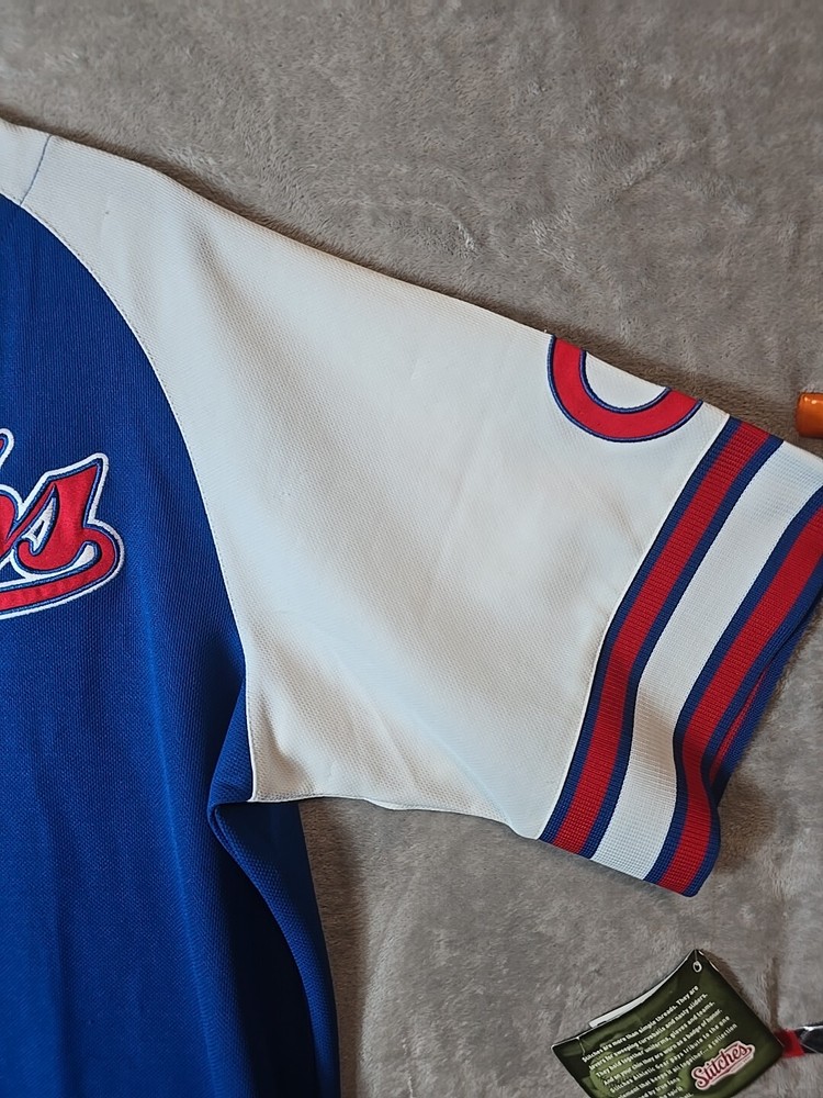 Show your support for the Chicago Cubs with this officially licensed Stitches jersey shirt. The blue shirt features the team's logo and is perfect for any fan. It is made of high-quality materials and has been designed to ensure maximum comfort. This shirt is perfect for men who love baseball and want to show their love for the Chicago Cubs. It is available in size X-Large and has a button-up closure. The shirt is made in Jersey and is perfect for anyone who loves sports memorabilia. Add this shirt to your collection today!