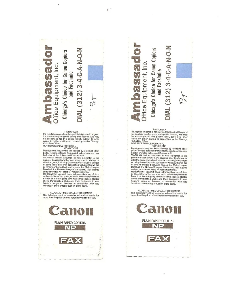 Chicago Cubs vs Los Angeles Dodgers Unused Baseball Tickets from 7/15/1990
