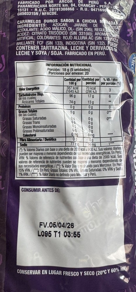 2 Sealed Bag of Chicha Morada - 360gr each bag Purple Corn Flavor Candies - Arcor Made in Peru Smoke free home Take a look at my other listings - I will be happy to combine shipping on items for you, just let me know.