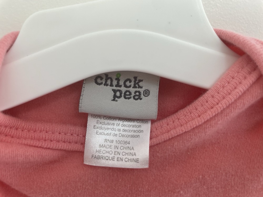 Country of Origin: China Sleeve Length: Short Sleeve Features: Comfort, Easy Care, Lightweight, Stretch Theme: Classic Seller Notes: “In very good condition. Free of rips or stains.” Number of Pieces: 1 Piece Closure: Snap Department: Girls Set Includes: Bodysuit Season: Spring, Summer Style: Bodysuit Brand: Chick Pea Occasion: Casual Pattern: Solid Material: 100% Cotton Size: 0-3 Months Type: One-Piece Garment Care: Machine Washable Color: Pink