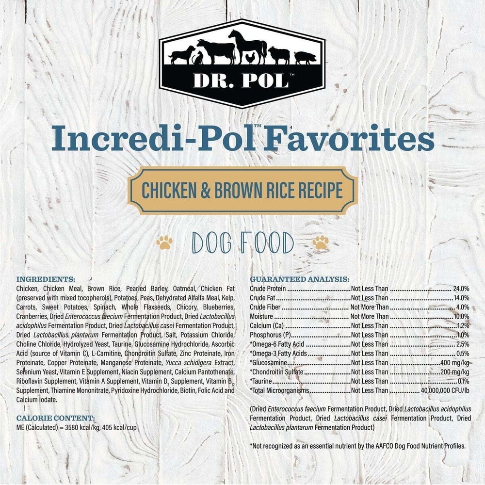 Cozy Electric Heating Blanket Faux Fur Soft Warm Throw Home Office Use 44.98 USD Free shipping Heavy Duty 40 Gallon Wheeled Industrial Tote W/ Drip Resistant Lid Storage New 26.84 USD 28.86 USD Free shipping 7% off 10 Piece Glass Mixing Bowls Set W/ Lids Food Storage Prep Serving Dish New 19.4 USD 20.86 USD Free shipping 7% off Soft Heated Blanket Twin Sherpa Electric Auto Off 5 Heat Settings Comfortable US 44.07 USD 47.39 USD Free shipping 7% off Bagless Upright Vacuum 720W Lightweight Multi Surface Cleaner 25ft Cord New 55.15 USD 59.3 USD Free shipping 7% off Electric Heated Blanket Soft Warm Auto-Off 5 Heat Settings Safe Eco-Friendly New 44.99 USD Free shipping Wet Dog Food Chopped Ground Dinner Beef Canned Adult Nutrition 4 Pack 22oz Cans 15.34 USD 16.49 USD Free shipping 7% off Professional Handheld Seed Spreader Bag Seeder 25lbs Capacity W/ Waterproof Bag 59.65 USD 64.14 USD Free shipping 7% off 300ct Baby Wipes Light Fresh Chamomile Hypoallergenic Soft Thick Resealable New 11.09 USD 11.92 USD Free shipping 7% off Premium BBQ Apple Wood Chunks Smoking Grilling 500 Cu In Natural Flavor New 14.51 USD 15.6 USD Free shipping 7% off Prismatic Iridescent Christmas Snowflake LED Decoration Kids Room Indoor New 31.51 USD 33.88 USD Free shipping 7% off Crossbow Soft Case W/ Self Healing Zippers & Adjustable Sling Camo Design New 30.89 USD 33.22 USD Free shipping 7% off Dr. Pol Incredi-Pol Favorites Chicken and Brown Rice Recipe Dog Food is an irresistibly tasty, nutritionally complete kibble your pup will love! Real chicken is the #1 ingredient, offering a high-quality source of protein to maintain muscle function. Every bite is packed full of vitamins and minerals, with brown rice to support digestion and vegetables to strengthen your dog’s immune system. Complete with natural ingredients, you can feel confident that you are giving your dog a balanced, healthy food that will keep them running back for more! With more than 50 years of experience, compassion and love for animals, Dr. Pol’s favorite animal is still a healthy animal. That’s why Dr. Pol Incredi-Pol Favorites are incredible foods - they’re veterinarian formulated with real ingredients for incredible pets. A 24lb bag of 100% nutritionally complete and balanced food your dog will love Chicken is the first ingredient, because your canine companion deserves the best Brown rice is included as a nutritious source of fiber with vegetables to strengthen immunity Made with vitamins and minerals for wholesome nutrition, without wheat, corn, or soy Veterinarian formulated for all life stages and cat breeds You may also like Large Foldable Metal Chicken Coop Pet Cage Duck Rabbit Hutch 37x19x20 Inch NEW 63.91 USD 68.72 USD Free shipping 7% off Luxury Velvet Wired Ribbon 10 Yards Christmas Wreaths Gift Wrapping Home Decor 34.67 USD 37.28 USD Free shipping 7% off Bakers Rack W/ Power Outlet Kitchen Microwave Stand Storage Shelf Hooks New 81.27 USD 87.39 USD Free shipping 7% off Bamboo Drawer Organizer Set 5pcs Stackable Eco-Friendly Home Office Storage New 35.54 USD 38.21 USD Free shipping 7% off Floral Indoor Outdoor Area Rug Water Resistant Easy Care Durable Loomed Design 111.25 USD 119.62 USD Free shipping 7% off 8 Piece Microfiber King Comforter Set Hypoallergenic All-Season Machine Washable 36.73 USD 39.5 USD Free shipping 7% off Harson Radiant Lines Round Mirror Decorative Wall Accent Art Nouveau Design New 81.51 USD 87.64 USD Free shipping 7% off 12 Piece Dinnerware Set Porcelain Plates Bowls Service 4 Dishwasher Safe New 71.47 USD 76.85 USD Free shipping 7% off 800X600 200lbs Fixed TV Wall Mount 42-100 Inch Ultra Slim Heavy Duty VESA New 56.95 USD 61.24 USD Free shipping 7% off 1800 Lumens LED Spotlight Waterproof Power Bank Emergency Light USB Charge New 52.11 USD 56.03 USD Free shipping 7% off Gigantic Heavy Duty 36x36 Dog Training Pads 150 Count Ultra Absorbent Quick Dry 91.55 USD 98.44 USD Free shipping 7% off Tranquil Collection Botanical Area Rug Stain Resistant Indoor Use Medium Pile 100.34 USD 107.89 USD Free shipping 7% off
