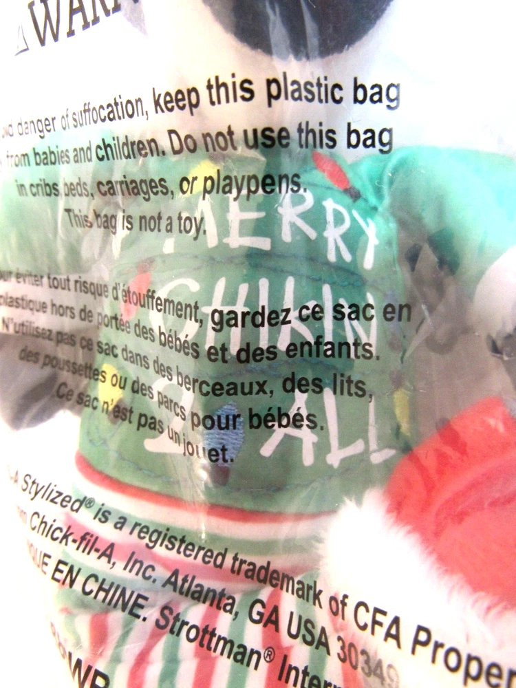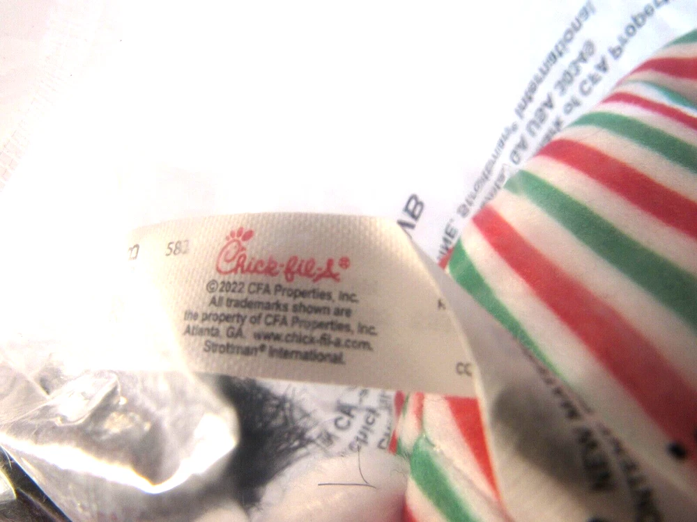 Date of Creation:2022Color:Black/WhiteOriginal/Reproduction:OriginalTheme:Restaurants & Fast FoodType of Advertising:Plush ToyCountry/Region of Manufacture:ChinaBrand:Chick-fil-A