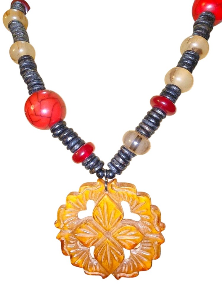 The Chicos Multi-Bead Statement Necklace features a carved amber pendant that glows a green hue under blavk light, making it a unique and eye-catching accessory. The pendant also passes the smell test for Amber, The necklace is 37" in length with a lobster closure, perfect for adding a touch of vintage flair to any outfit. The statement pendant, beaded design, and multicolor elements make this necklace a standout piece for women who appreciate Asian-inspired fashion. The Chicos brand ensures quality and originality in this captivating necklace. **Please understand that all items sold at this shop are either used vintage items or new old stock items. They may have crackled glaze or factory flaws or very minor damage. Anything significant, I will point out, so kindly look at the pictures carefully as they are part of my description, and I don't want you to miss anything and be unhappy with your purchase. If you want more pictures please contact me. **I ship USPS *I package all my items up securely to ensure they get to your house in the condition they left mine. *The pictures that you see are of the actual item. *Please inspect each picture by enhancing them or enlarging them to see and imperfections *Any imperfections or concerns of this item I highlight in each picture. *Thank you for stopping by my shop *Items are shipped from a -free home