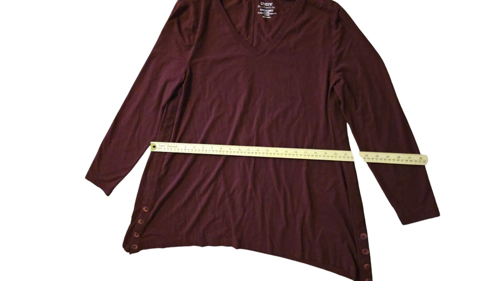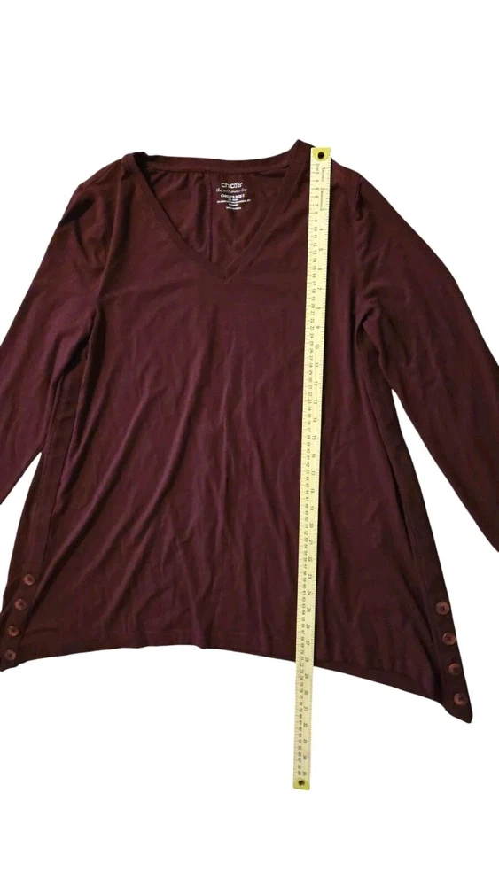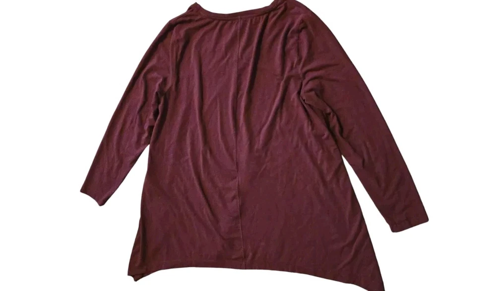 Elevate your wardrobe with this stunning Lagenlook tunic blouse. The maroon color gives it a Bohemian feel while the oversized feature makes it perfect for a preppy, laid-back look. Made with a blend of pima cotton, modal, and spandex, this blouse is soft and comfortable to wear all day long. The blouse is a size 2, which is equivalent to a large in standard sizing. It's a great addition to any woman's wardrobe, especially those who love to experiment with different styles. The blouse features a Lagenlook brand, which is known for its high-quality clothing. Get ready to turn heads with this chic and trendy blouse!