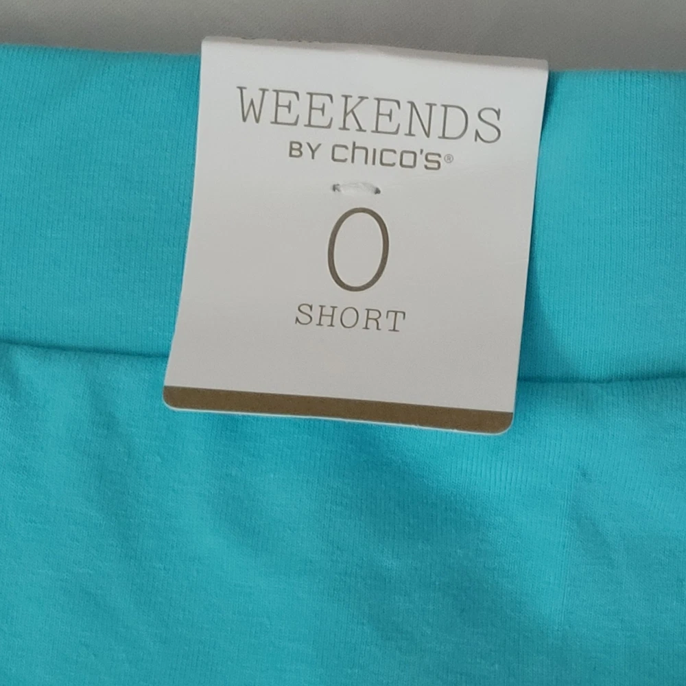 Chicos Shorts Womens 0 US S Aqua Blue Weekends Stretch Pull On Comfort Casual Summer is shorts season, and these weekend shorts are winners. Made from soft cotton-blend fabric, they stretch to follow your every move with comfort and style. pair them with a weekend tee and your favorite sandals or sneakers, and you're set for cool, casual days. Comfy, casual, soft, and stretchy. The way all weekends should feel. Pull-on styling. Front pockets. Cotton, spandex. Machine wash. Imported