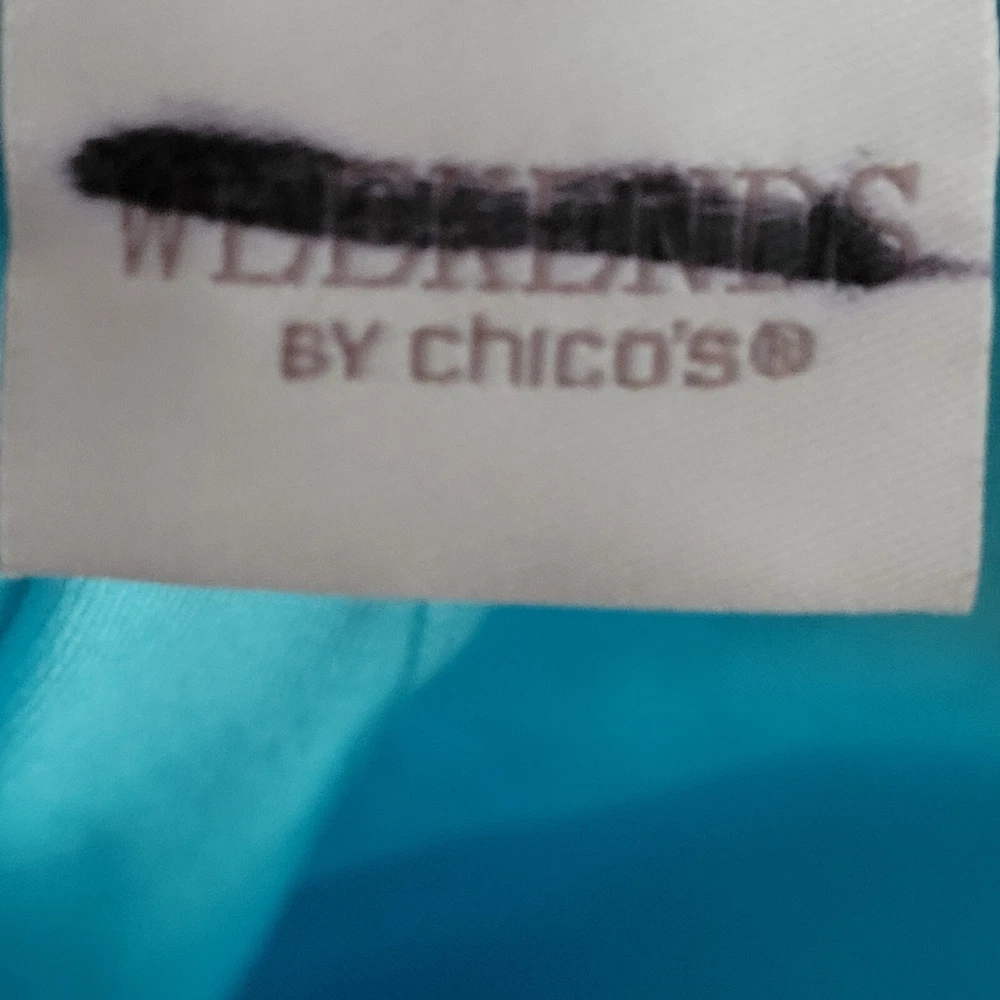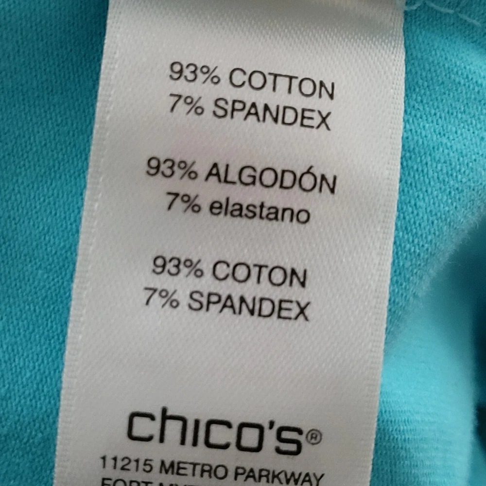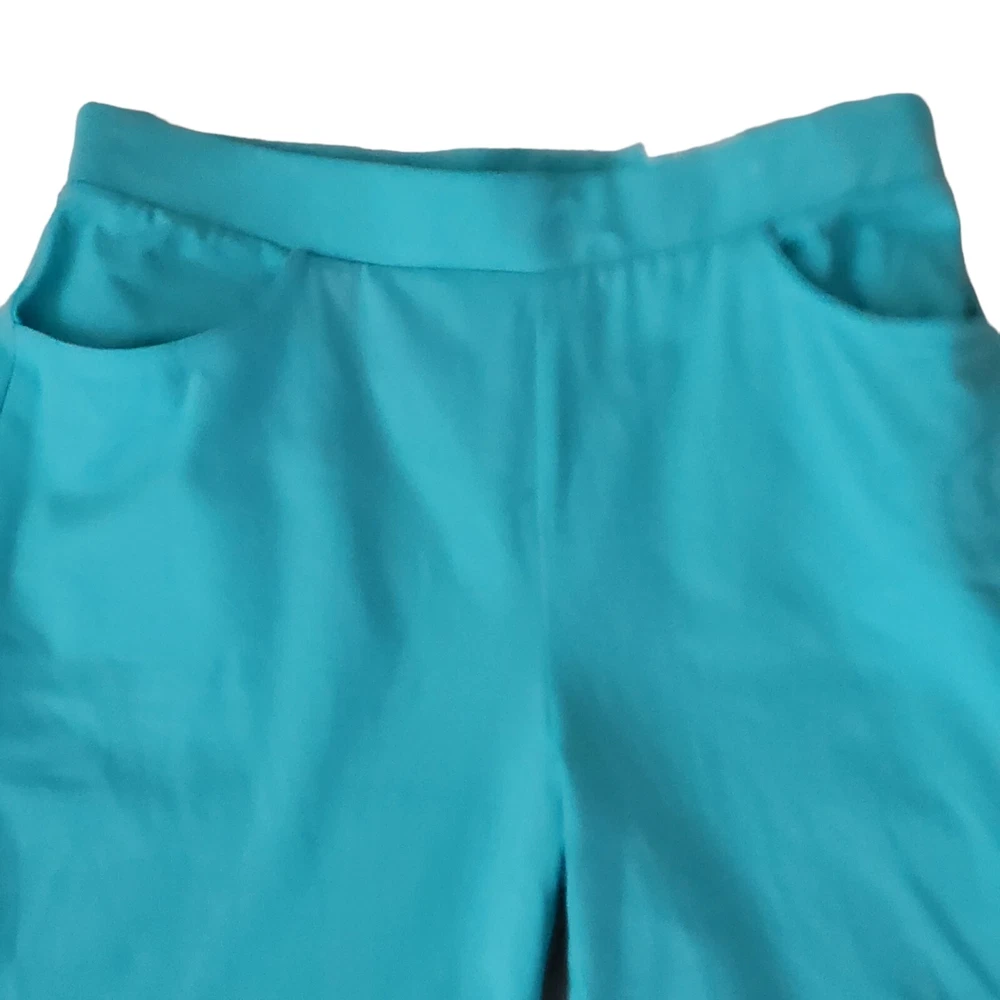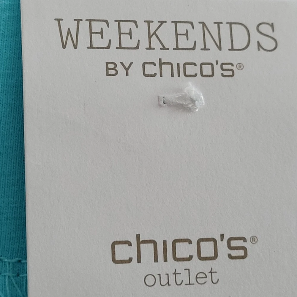 Size: S Color: Aqua Occasion: Casual Garment Care: Machine Washable Handmade: No Leg Style: Straight Department: Women Style: Capri Theme: Classic Brand: Chico's Material: Cotton, Spandex Features: Comfort, Crop, Elastic Waist, Pockets, Ruched, Stretch, Ties Product Line: Weekends Country/Region of Manufacture: Vietnam Size Type: Regular Fabric Type: Knit Front Type: Flat Front Personalize: No Pattern: Solid Closure: Pull On Type: Capris Accents: Pockets Vintage: No Fit: Regular