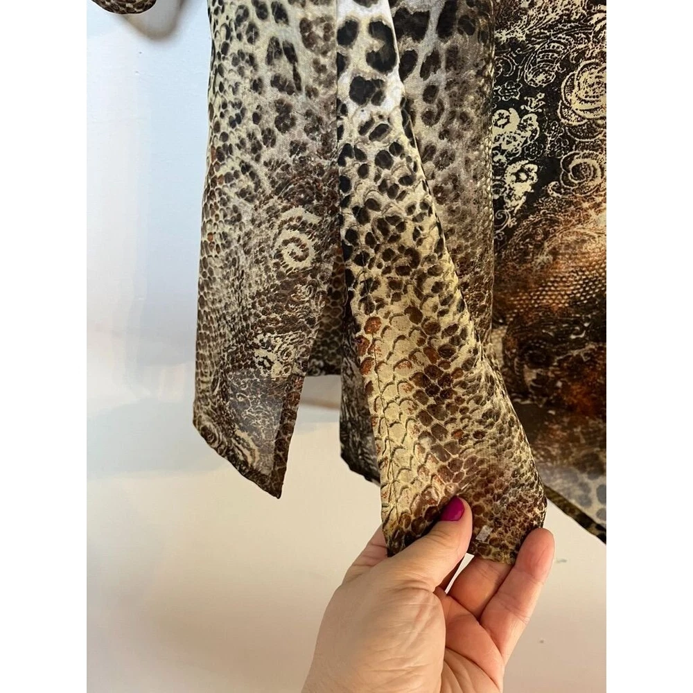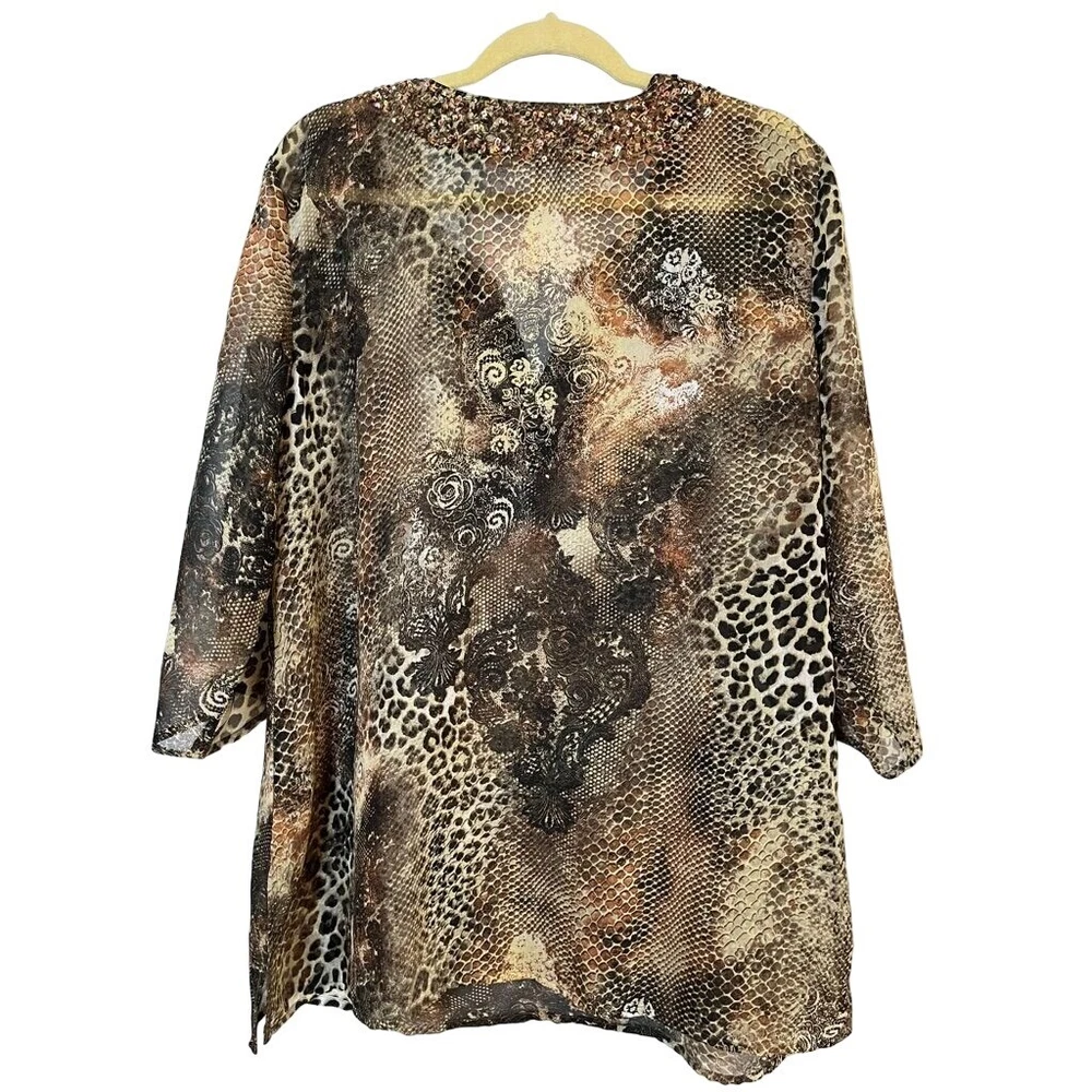 Chicos Women Top Size XL Brown V Neck Pullover Black Animal Print Bronze Sequin