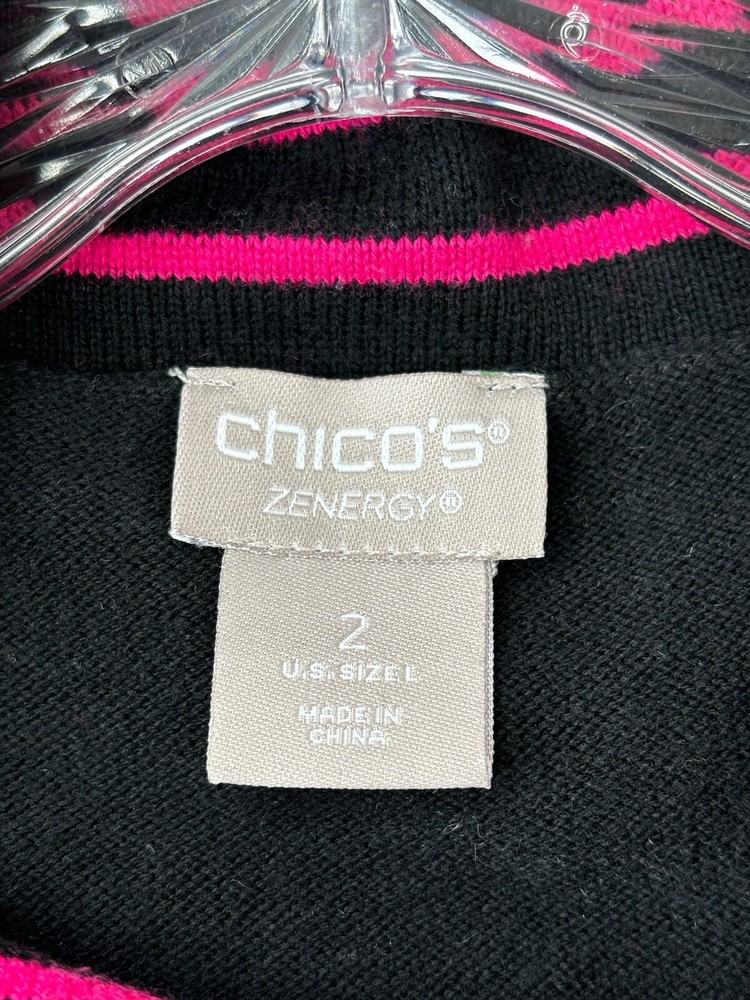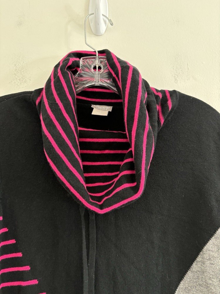 Chico’s size 2 women’s sweater tunic cowl neck drawstring multi colors long sleeve , 20 inches from pit to pit, 25 inches from shoulder to hem