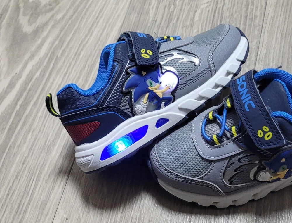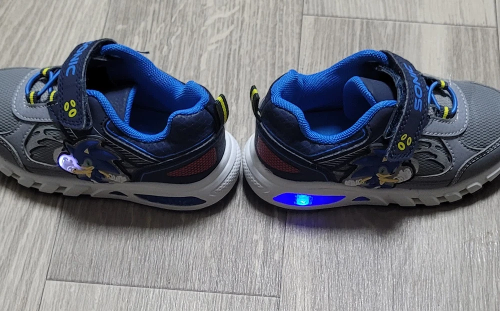 These Children's Sonic light up shoes in size 10 are perfect for active kids. With a lace-up closure and adjustable strap, they offer a comfortable fit for all-day wear. The sneakers feature a mid-top shoe shaft style with a solid blue color and Sonic the Hedgehog logo accents, making them both stylish and fun. Made of mesh material with a rubber outsole, these athletic shoes are ideal for walking, school, or running during the summer, fall, or spring seasons. Upgrade your child's footwear with these vibrant and practical light-up sneakers.
