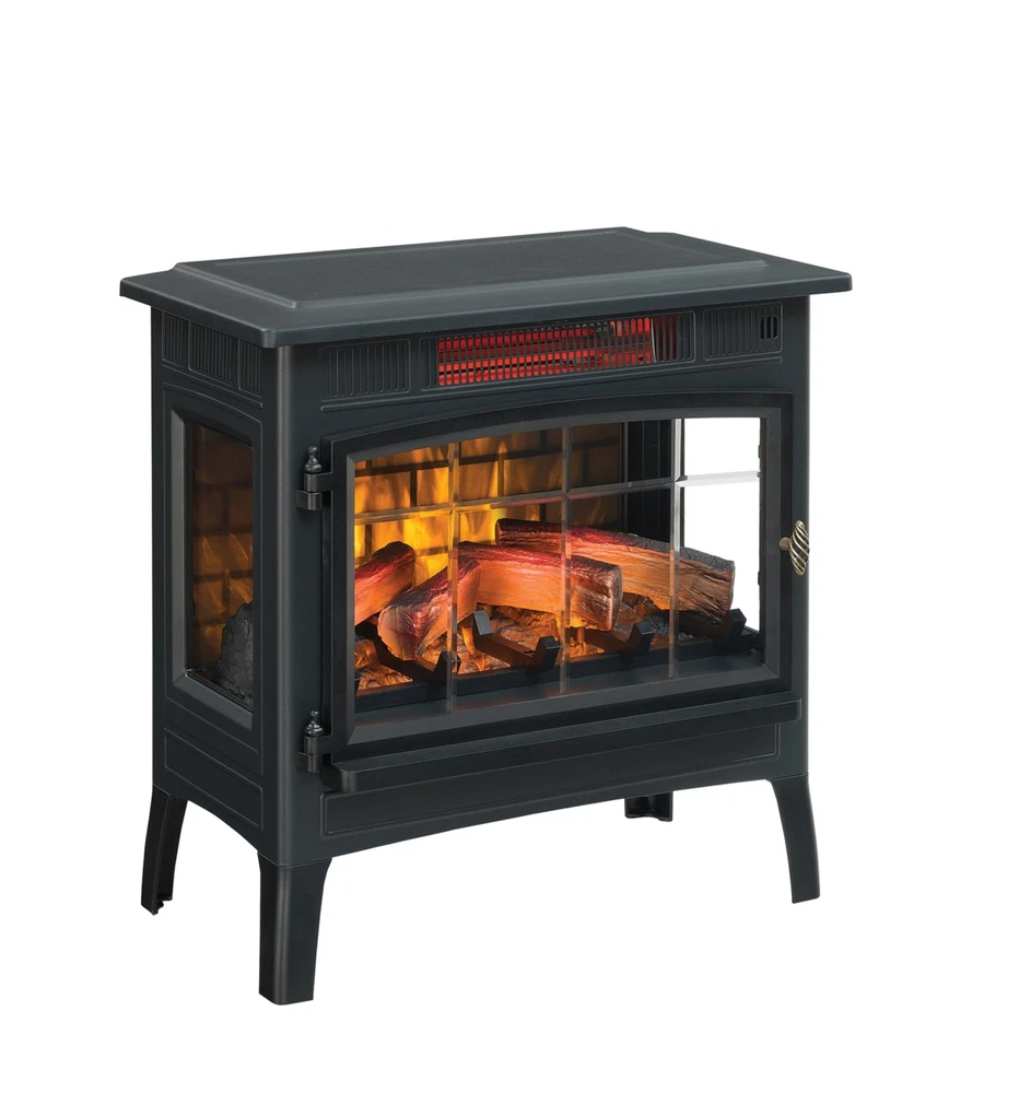 This electric fireplace stove is the perfect addition to any room, especially in small living spaces. Infrared quartz heat is energy-efficient, saves you money on gas costly bills, and is safe to use around children and pets. Experience all the beauty of a traditional fireplace with the realistic 3D flame effect; the settings can be adjusted to suit the room, the weather, or even your mood. Charming Design: Includes side viewing windows, a glass door that really opens, and a brick-style back panel. This stove heater not only enhances your décor but delivers infrared heat in any room up to 1,000 square feet. Easily carry this portable heater to any room you wish. Money-Saving Heater: Supplemental heating is an effective way to provide comfort to your home, without having to warm every room. Save money on your next energy bill by lowering the thermostat and using this using this heater when and where you need it most. Glowing Logs and 3D Flames: Bring the cozy cabin vibes to your home with the realistic flame effect. The glowing logs and soothing flames help you unwind as you relax on the couch and sip your favorite beverage; or, turn down the brightness levels for a perfect nightlight while you slumber. Year-Round Glow: With independent flame and heat controls, you can enjoy the cozy glow of your fireplace even while the heat is off for a beautiful ambiance in every season. Adjustable Settings:. Enjoy an adjustable thermostat and flame dial that will customize your fire to the ideal look and temperature.
