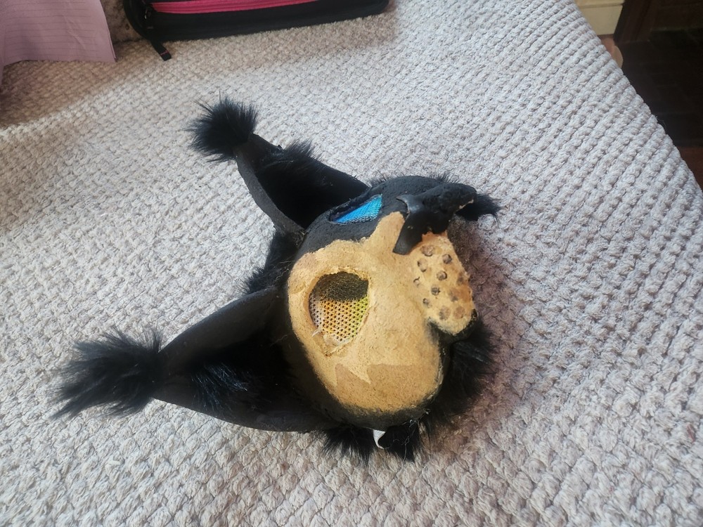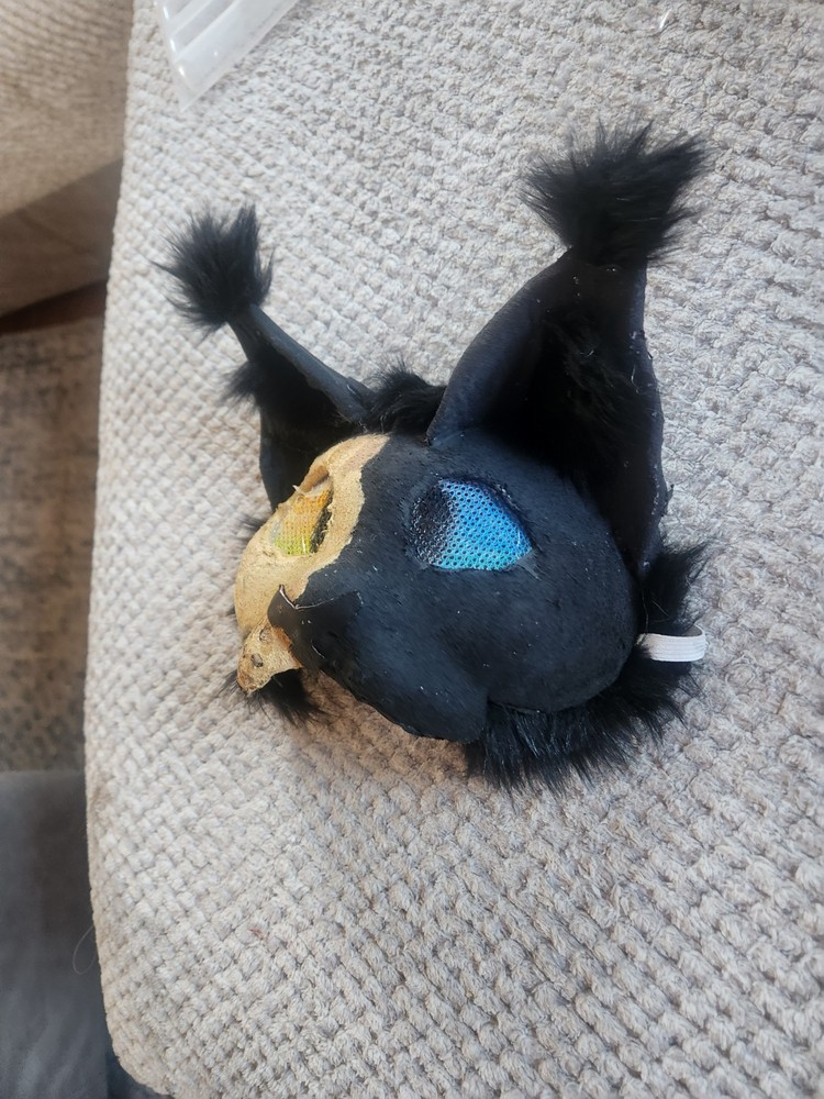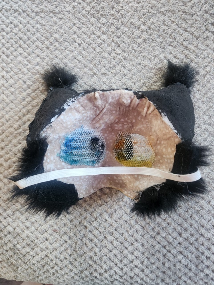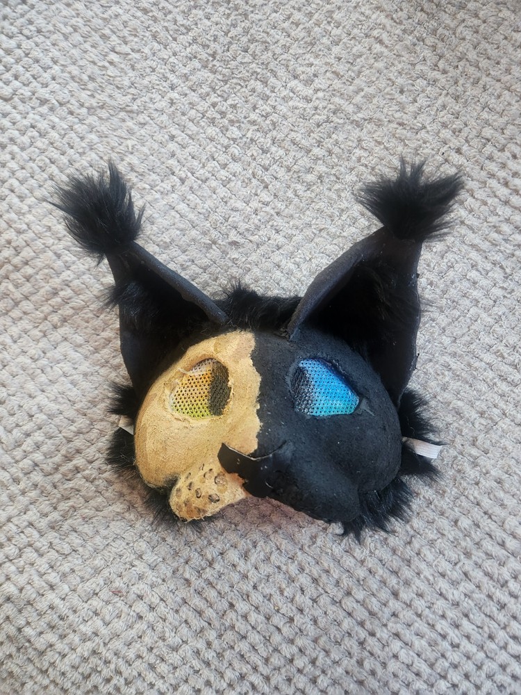 A beautiful chimera cat mask with two different colored eyes. Its pretty high quality, and its lined and felted. The fur is medium quality. This mask was made for therians and furries or anything in between!