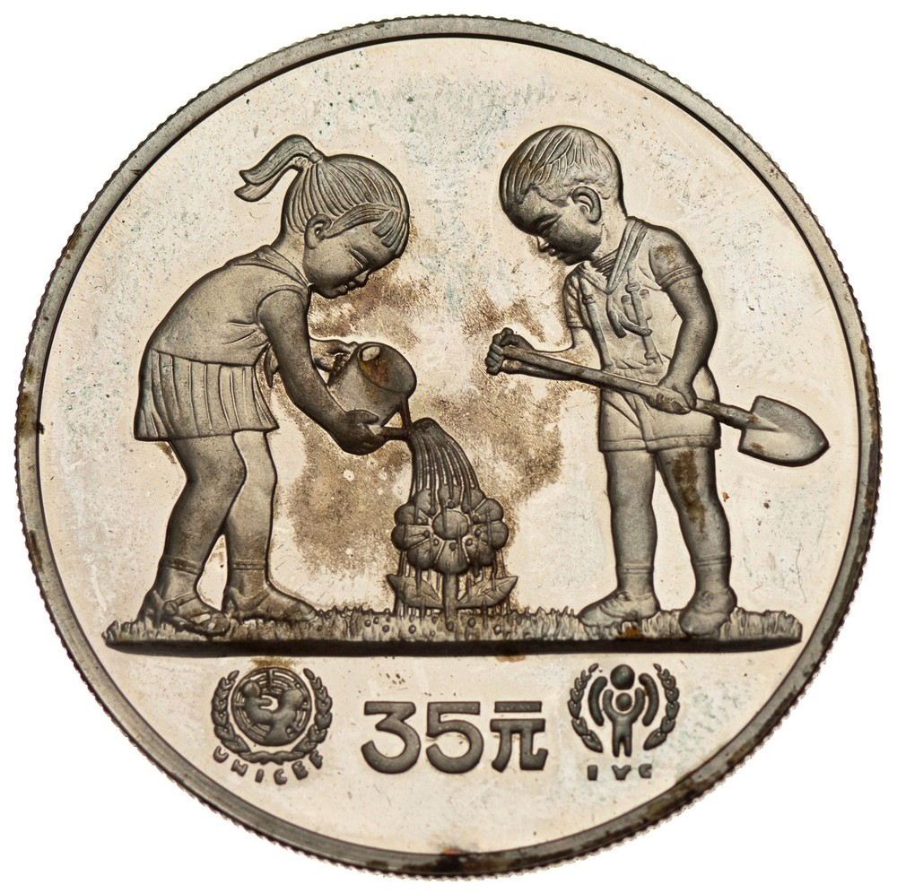 China - 35 Yuan 1979 - Year of the Child, PROOF, with some fingerprints Shipping with registered mail worldwide. Combined shipping is possible. Netherlands more than 60 dollars $12,- Netherlands less than 60 dollars $6,- Europe $15,- World/outside europe $19,- >
