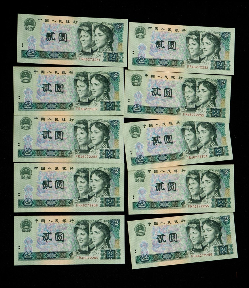 China Banknote 1990 2 Yuan, Uncirculated, Condition 9/10, Price for one piece!