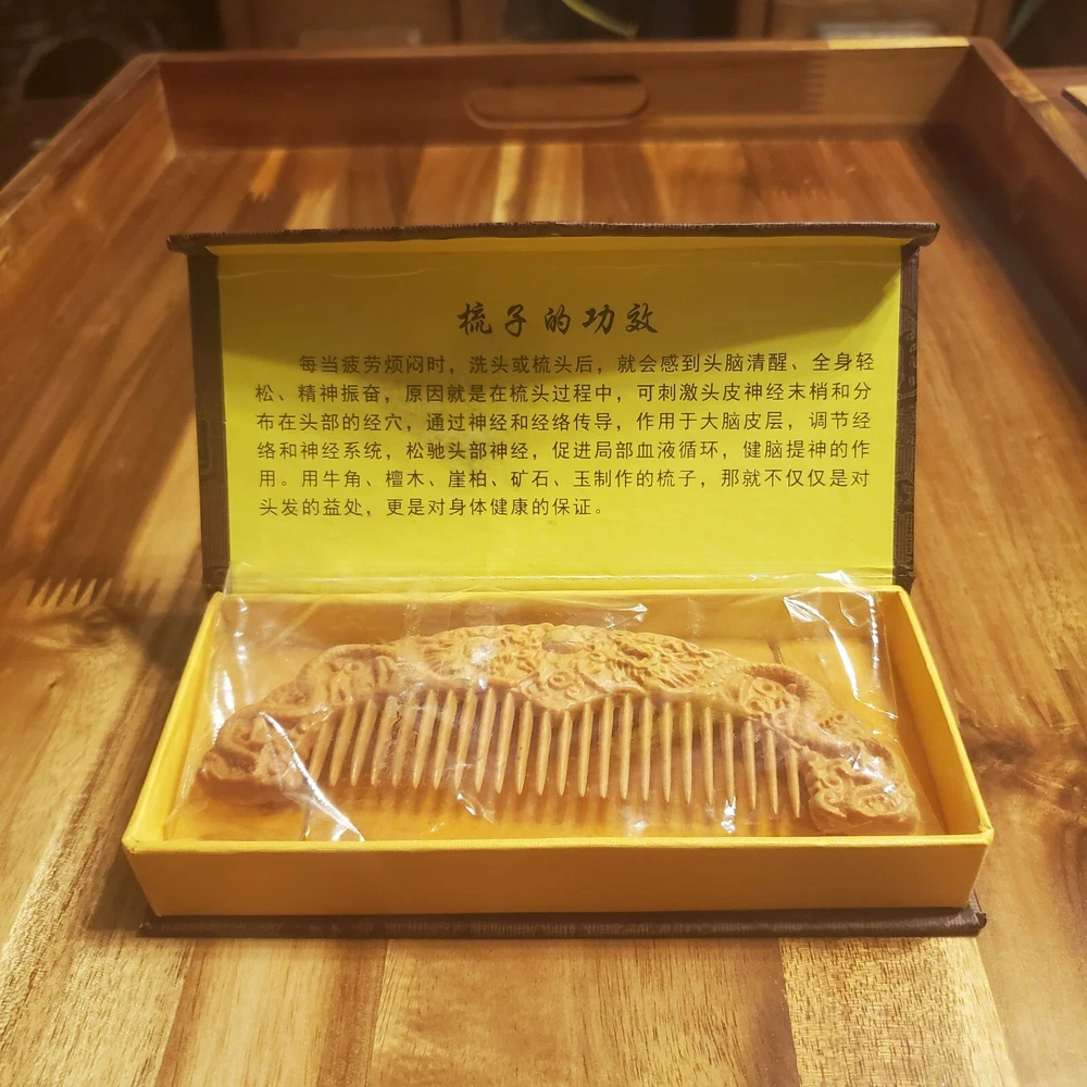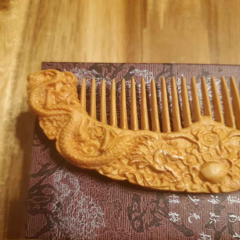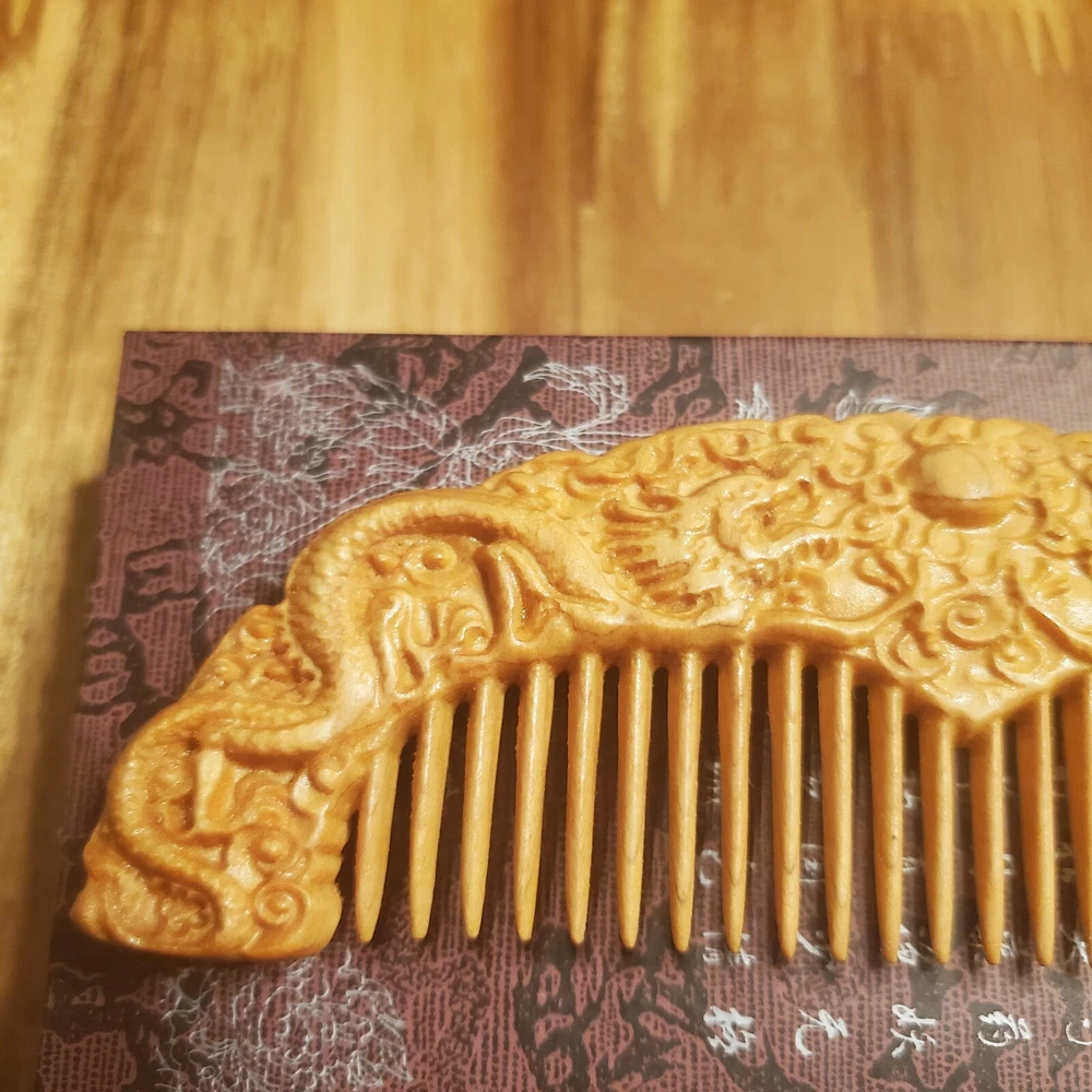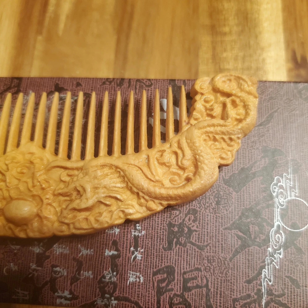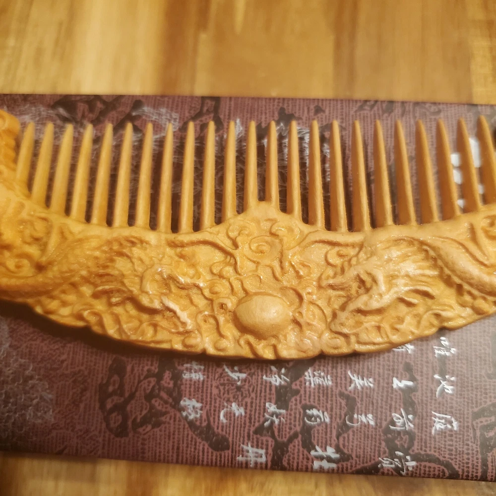 Add a touch of elegance to your hair routine with this beautiful China Natural Thuja Wood Comb! This double-sided carved Dragon Image comb is perfect for everyday use and will suit both men and women. Crafted from the finest quality Wood, this comb is made to last and will stay in great condition for years to come. The intricate Dragon design is a true work of art and will make a great addition to any collection. Made in China, this comb is a must-have for anyone who appreciates quality and craftsmanship. Box 3