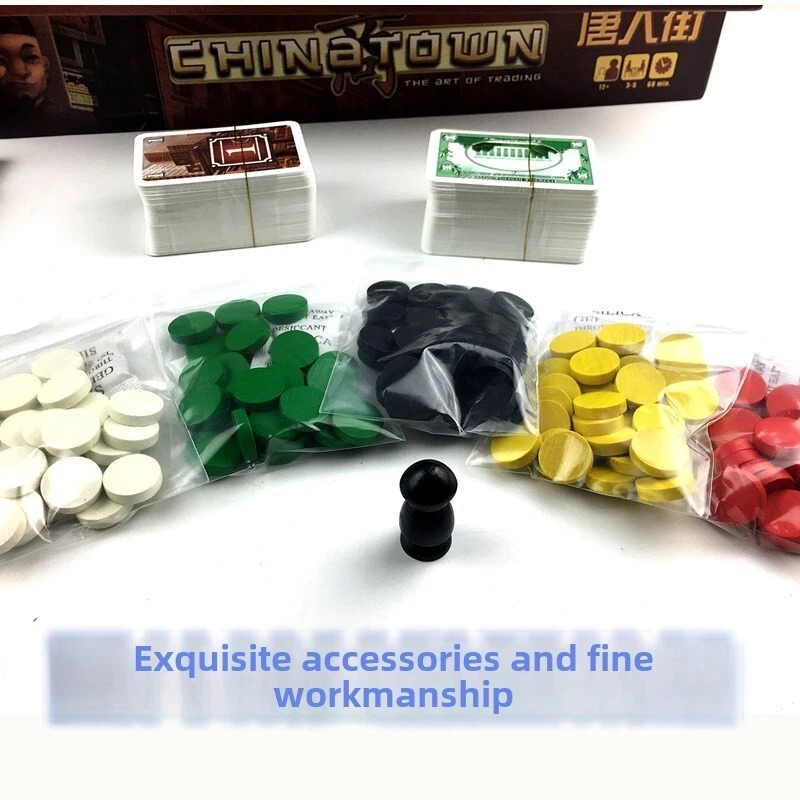 Game description: In 1960 New York's Chinatown, a new wave of Chinese immigrants is pouring in. A boom in the population of the area initiated by the new immigration law! North of what is now Kenny Street and East of Poway Street. Immigrants, hard-working men and women, arrive in the thousands to buy buildings, set up businesses and realize the American Dream! In this game, you are one of them. Use the savings you have in hand for such opportunities in New York! Do you know how to use the extraordinary wealth your talents have made in America? The focus of the game is on trading, and anything can be traded. There are usually no specific negotiating methods during the transaction phase, and there are few restrictions. Players can use building blocks (which can be traded with or without a store), store blocks, or cash to trade any combination of transactions agreed upon by both buyers and sellers. Each transaction may involve only two players negotiating, or it may involve more than three players negotiating simultaneously. The process of the transaction can be noisy and quiet; it can be public and secret; but in any case the results of the transaction must be publicly displayed (eg: transfer of property rights in the store or building area; change of ownership of commodity blocks; increase or decrease in cash; etc.). When the property rights of shops and building areas are transferred, players must also change their color markings to indicate the change of ownership.
