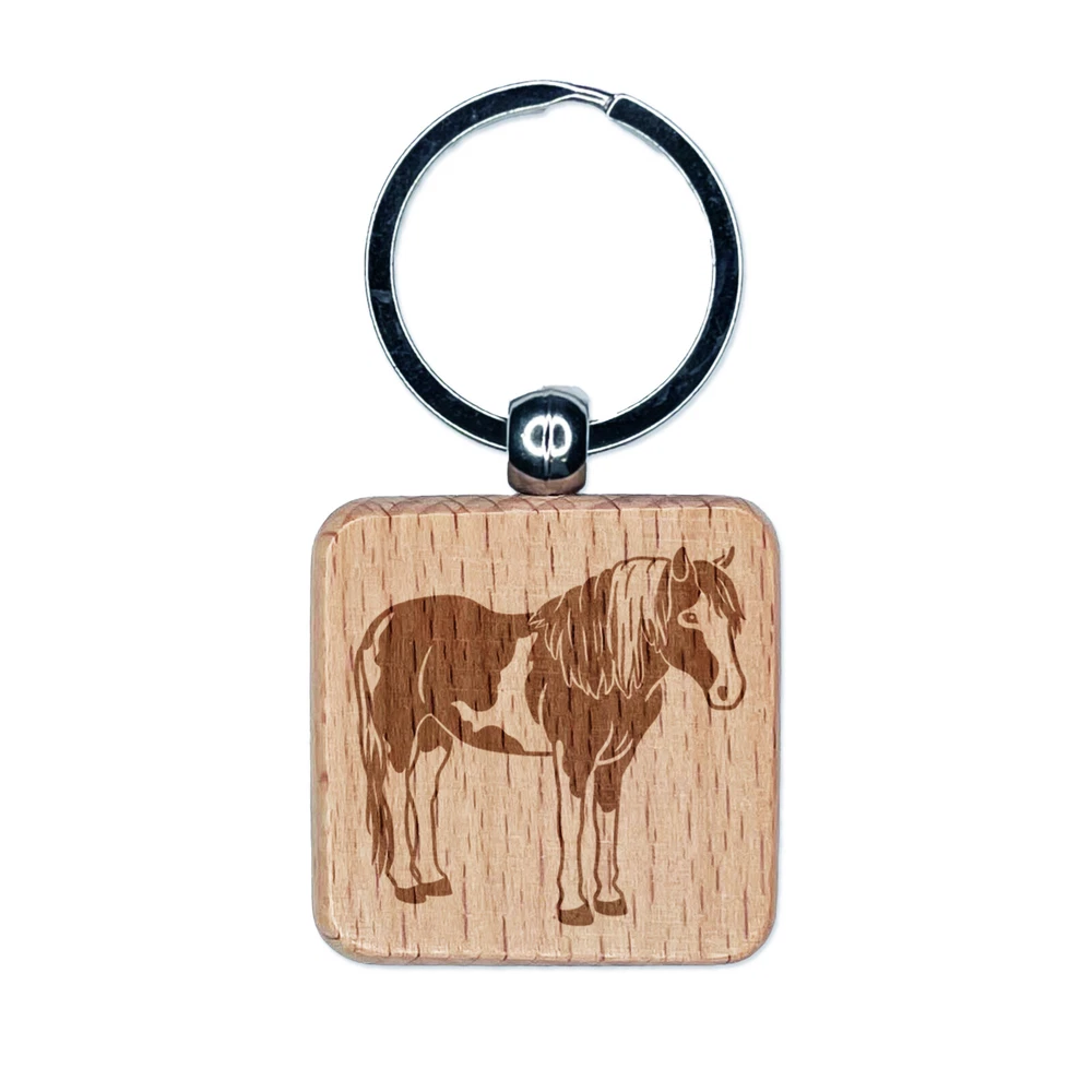 Chincoteague Island Pony Engraved Wood Square Keychain Tag Charm