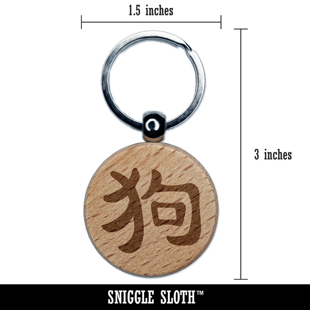 Chinese Dog Symbol Engraved Wooden Round Keychain Charm