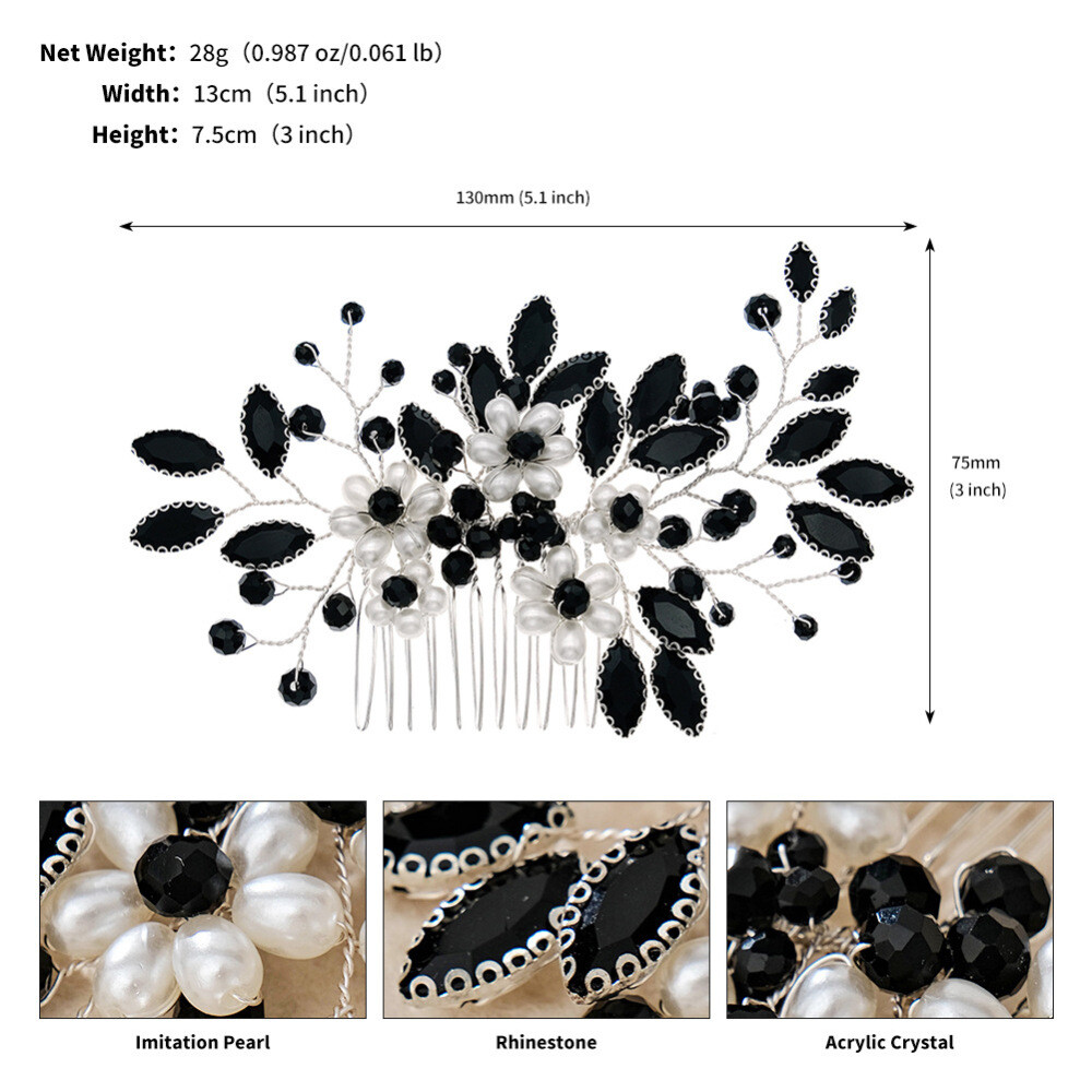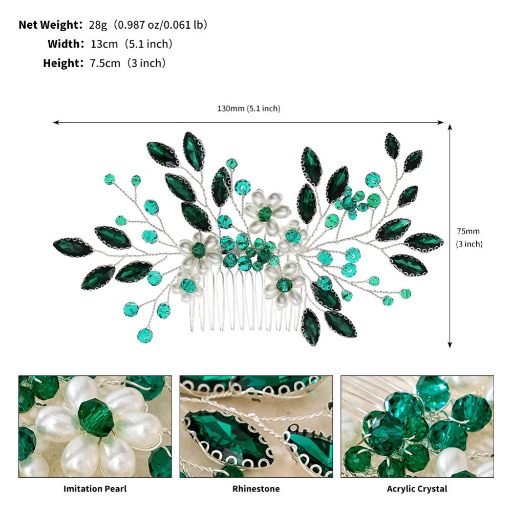 Features: Elegant and Sparkling Design: Our hair jewelry headdress features a forest-inspired design, handmade with sparkling rhinestones and white pearls for an elegant touch. Versatile Hair Comb: This hair jewelry hair comb for women is perfect for various occasions, including weddings, bridal events, bridesmaid gatherings, and even dating. Glittering Headpiece with Smooth Teeth: Our hair jewelry wedding bridal hair comb is a stable headpiece that features smooth teeth, providing a secure and comfortable fit for thick hair styling decoration. Perfect Hairstyle Making Tool: This hair jewelry headdress is perfect for gown dress hairstyle making, adding a touch of glamour and elegance to any hairstyle. Quality Materials: Our forest style handmade sparkling headwear is made with quality materials, including shiny rhinestones and white pearls, ensuring durability and long-lasting wear. Specification: Material: Alloy, rhinestones, imitation pearl Product Size: 13*7.5cm Product Weight: 28g Notes: 1. Due to the lighting effects and shooting angles, there is a color difference in the product, please understand. 2. Due to manual measurement, there is a tolerance in the product size. Package includes: 1 * Hair Comb Headdress
