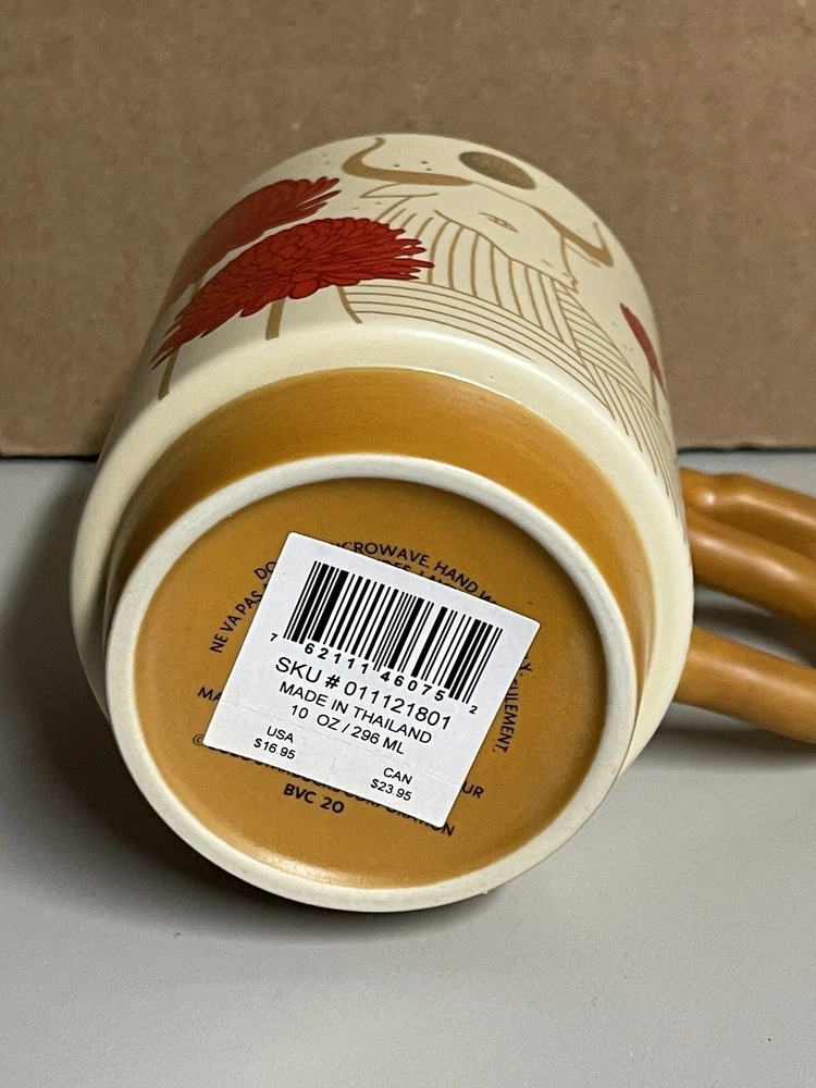 Celebrate the Chinese New Year of the Ox with this limited edition Starbucks mug. The multicolor floral design adds a touch of luck to your morning coffee routine. This 10-ounce ceramic mug is perfect for a single serving and features the iconic Starbucks logo. The mug is made in Thailand and is a must-have for any collector or fan of Chinese New Year. Whether you're enjoying your morning coffee or displaying it on a shelf, this mug is sure to bring a smile to your face. Don't miss out on this opportunity to add a unique piece to your collection.