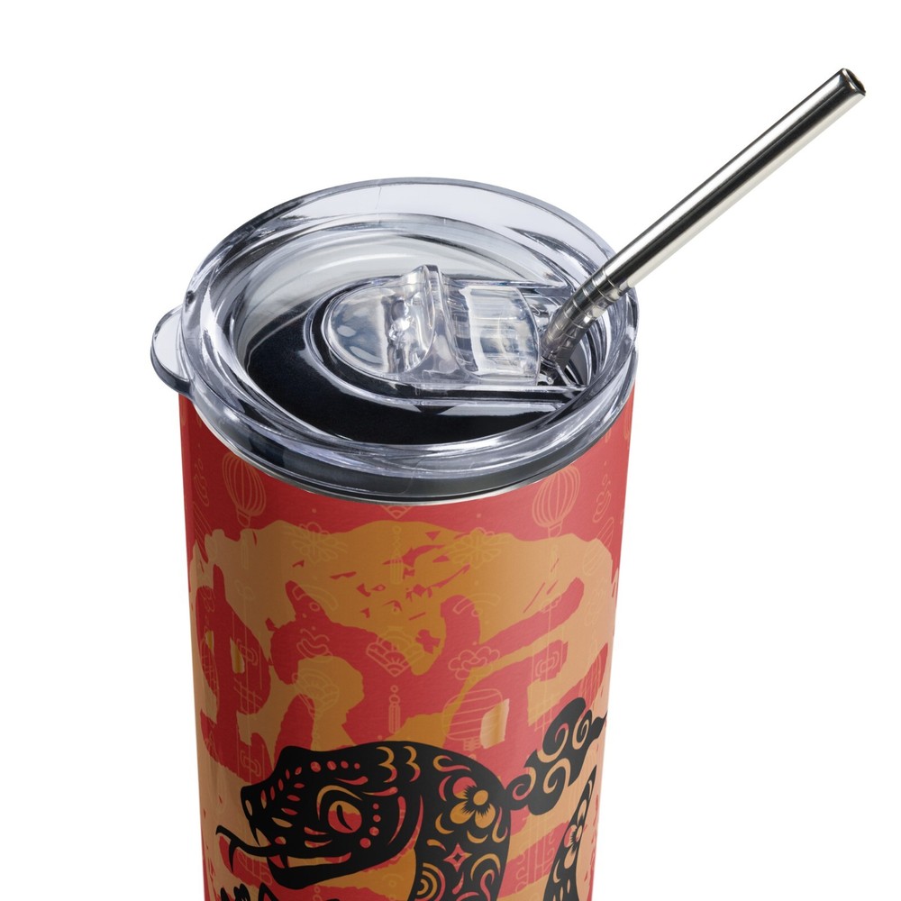 Celebrate the vibrant spirit of the Chinese New Year with our 20 oz Year of the Snake Tumbler! This beautifully designed tumbler showcases a stunning, intricately crafted snake, symbolizing wisdom, transformation, and strength for the Year of the Snake 2025. The design features traditional Chinese styling, bringing cultural elegance to your daily routine. Made from high-quality stainless steel, this tumbler ensures durability and keeps your drinks at the perfect temperature. Whether you're enjoying a hot beverage or a refreshing cold drink, it maintains the warmth for up to 8 hours and keeps cold beverages chilled as well. With a high-quality, fade-resistant image, this tumbler is sure to impress. Please note, hand washing is recommended to preserve the design’s longevity. It also comes with a sleek metal straw and a clear, secure lid for convenience and on-the-go enjoyment. Perfect for gifting or keeping as a personal celebration of the new year, this tumbler is the ideal companion for your festive moments. Celebrate the Year of the Snake in style—order your Chinese New Year Tumbler today!