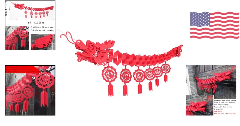 Chinese New Year Dragon Decorations - 1.7m Long - Traditional & Modern Craft ‹ › ‹ › ‹ › ‹ › ‹ › ‹ › ‹ › ‹ › ‹ › ‹ › ‹ › Chinese New Year Dragon Decorations -1.7m Long -Traditional & Modern Craft Features: Chinese traditional dragon decorations 1.7m long Combined traditional and modern craft, making festive decoration more high-end & elegant Repeatable disassembly & assembly Will not fade after long use Come with 6 hanging ornaments Benefits: Adds a traditional touch to your Chinese New Year celebrations High-quality craftsmanship for a more elegant look Easy to assemble and disassemble for storage Durable and long-lasting Comes with 6 hanging ornaments for added decoration Why choose our Chinese New Year Dragon Decorations? Make your Chinese New Year celebrations even more special with our 1.7m long dragon decorations. Combining traditional and modern craft, these decorations are high-end and elegant, adding a touch of tradition to your festivities. With repeatable disassembly and assembly, they are easy to store and will last for years to come without fading. Plus, the 6 hanging ornaments add an extra festive touch to your decor. Don't miss out on these beautiful decorations - order your Chinese New Year Dragon Decorations today! Shipping Free & Fast Shipping - We offer free shipping to most of the USA with a normal delivery time of 3-7 days. However, due to the current situation, additional delivery time (up to 3 weeks) may be required for some items. Alternative Carriers - We may use alternative carriers (e.g. USPS, FedEx, UPS, etc.) to ensure your package arrives safely and on time. Due to the use of multiple carriers, we are unable to provide a tracking number automatically. Handling Time - Orders are processed and shipped within 1-2 business days of receiving cleared payment. Shipping Restrictions - Shipping to Alaska, Hawaii, Puerto Rico, Guam, and other US territories may incur shipping charges or delivery restrictions. Please contact us before ordering, or your order can be refunded/cancelled. State Restrictions - There may be restrictions based on your state of purchase. For example, certain items may not be shipped to California due to state regulations. Contact for Tracking Updates - If you require tracking updates or have any concerns about the delivery of your order, please feel free to contact us, and we will be happy to assist you. Return 30-Day Hassle-Free Returns - We want you to be completely satisfied with your purchase. If you are not, you can return the item within 30 days of receiving it for a full refund or exchange. Easy Return Process - To start a return, simply contact us and we will provide you with a prepaid return shipping label and detailed instructions. Restocking Fee - There are no restocking fees for returns. However, the buyer is responsible for return shipping costs if the return is not due to a seller's error. Refund Processing Time - Refunds will be processed within 5 business days of receiving the returned item in its original condition. Payment We accept all major credit cards, PayPal, and Apple Pay for your convenience. Your payment information is secure and encrypted to ensure a safe and seamless transaction. Please complete your payment within 3 days of purchase to avoid any delays in shipping. Feedback Your feedback is extremely important to us. We strive to provide the best products and customer service possible. If you are satisfied with your purchase, please take a moment to leave us a positive review. If you have any concerns or issues with your order, please contact us before leaving negative feedback. We are committed to resolving any problems and ensuring your satisfaction. Contact Us If you have any questions or concerns, please feel free to reach out to our customer support team. You can contact us through the eBay messaging system. We are available Monday to Friday, 9:00 am to 5:00 pm EST, and we will do our best to respond to your inquiry within 24 hours. Thank you for supporting our small family business!