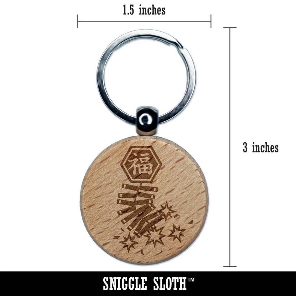 Chinese New Year Fireworks Firecrackers Engraved Wood Round Keychain Tag Charm
