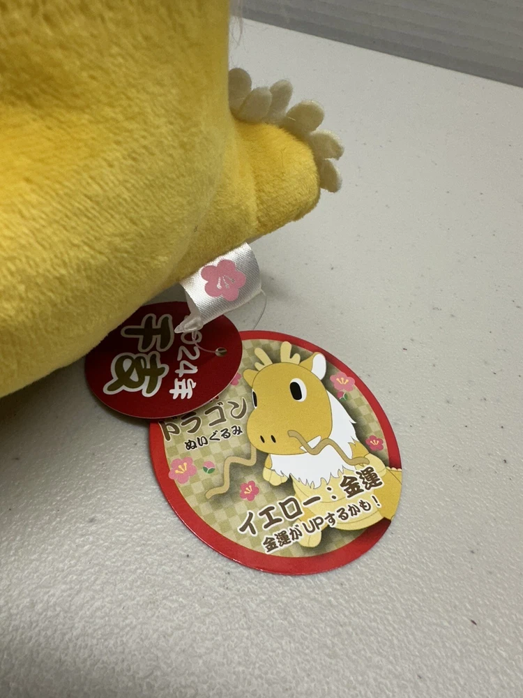 Celebrate Chinese New Year with this delightful yellow dragon plush stuffed animal. The vibrant yellow color symbolizes good luck and prosperity. Perfect for collectors or as a gift, this stuffed animal is sure to bring joy and happiness. The dragon is a traditional symbol of power and luck in Chinese culture, making this plush a meaningful addition to any collection. Whether displayed as a decorative item or used for play, this stuffed animal is a must-have for anyone who loves Chinese New Year or simply appreciates adorable and unique plush toys. Specifications Country of manufacture: China Material / component: *Material: Polyester Description "New Year" dragon stuffed toy Cute stuffed toy of the Chinese zodiac! Colorfully decorate your New Year's Eve and New Year's Day! Original (Japanese) "New Year" dragon stuffed toy かわいい干支のぬいぐるみ! カラフルに年末年始を彩ります!! Estimated Arrival Notes 107 109