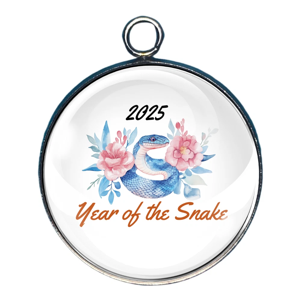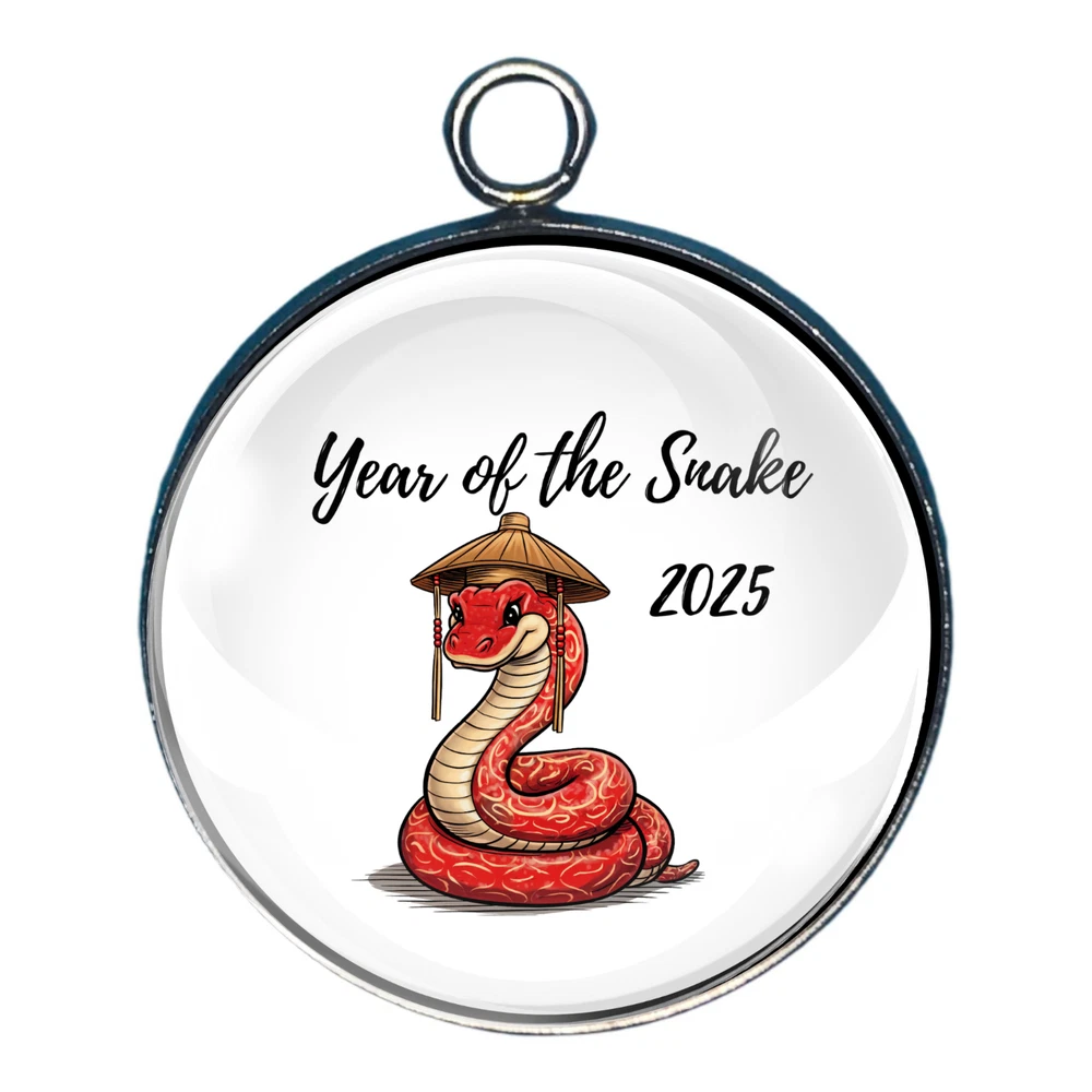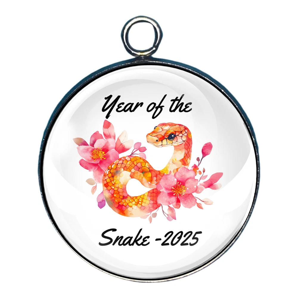 Ring in the Chinese New Year 2025 with these Year of the Snake charms. These are glass cabochon charms set into a stainless steel, Silver tone or Gold tone base. We make these charms in three different sizes. Small (14mm) -good size for Earrings Medium (18mm) - good size for Bracelets Large ( 25mm) - good size for Necklaces These Charms are Unisex but recommended for Adults (13+) " CLICK ON THE STYLE# TO SEE THE CORRESPONDING IMAGE" These wonderful charms/pendants are great for making Necklaces, Bracelets, Earrings, Bookmarks, Zipper pulls, Hat Pins, Lapel Pins, Magnets, Key Tags, Purse Danglers, Crafts and so much more... The possibilities are endless with these charms so let your creativity run wild! The glass Cabochon charms are NOT waterproof, so you must take them off for showering/bathing/swimming, or other activities where they may get wet.
