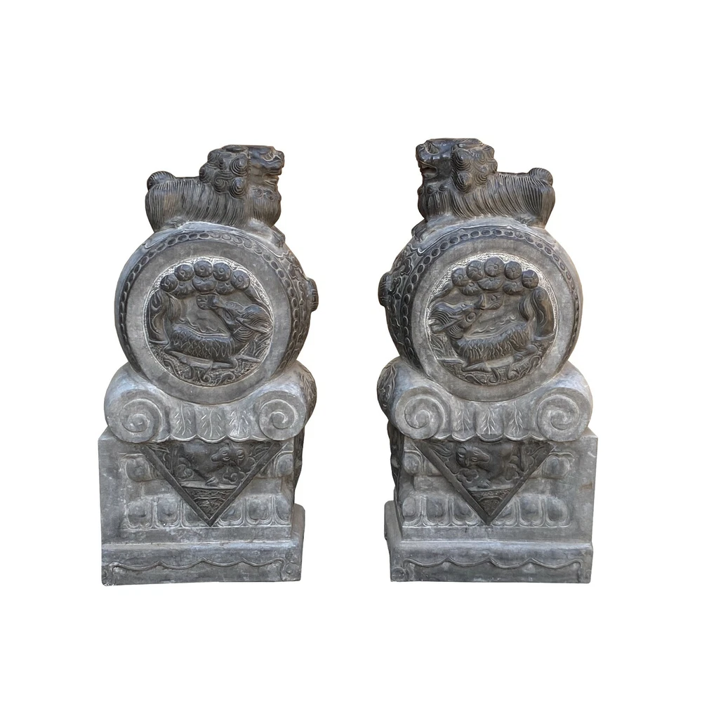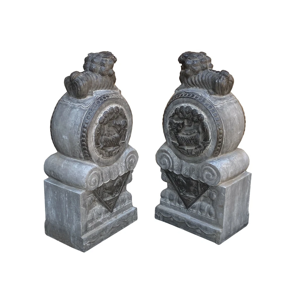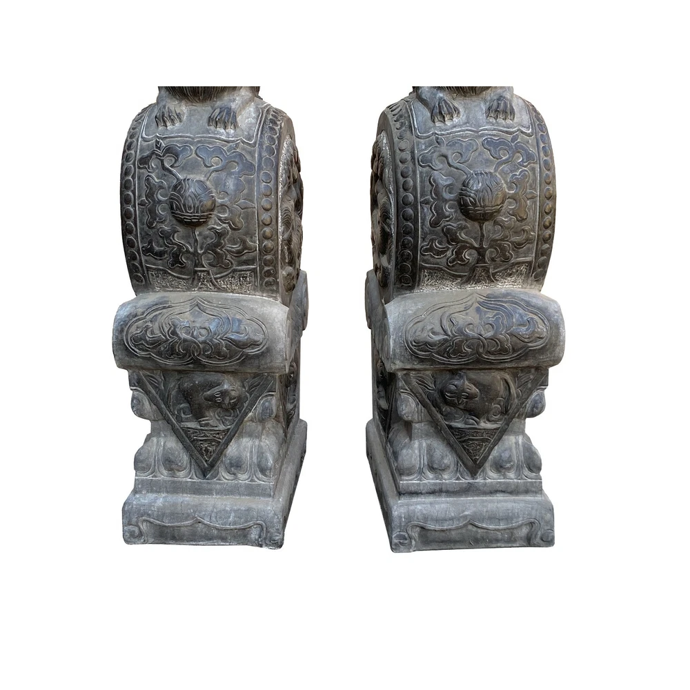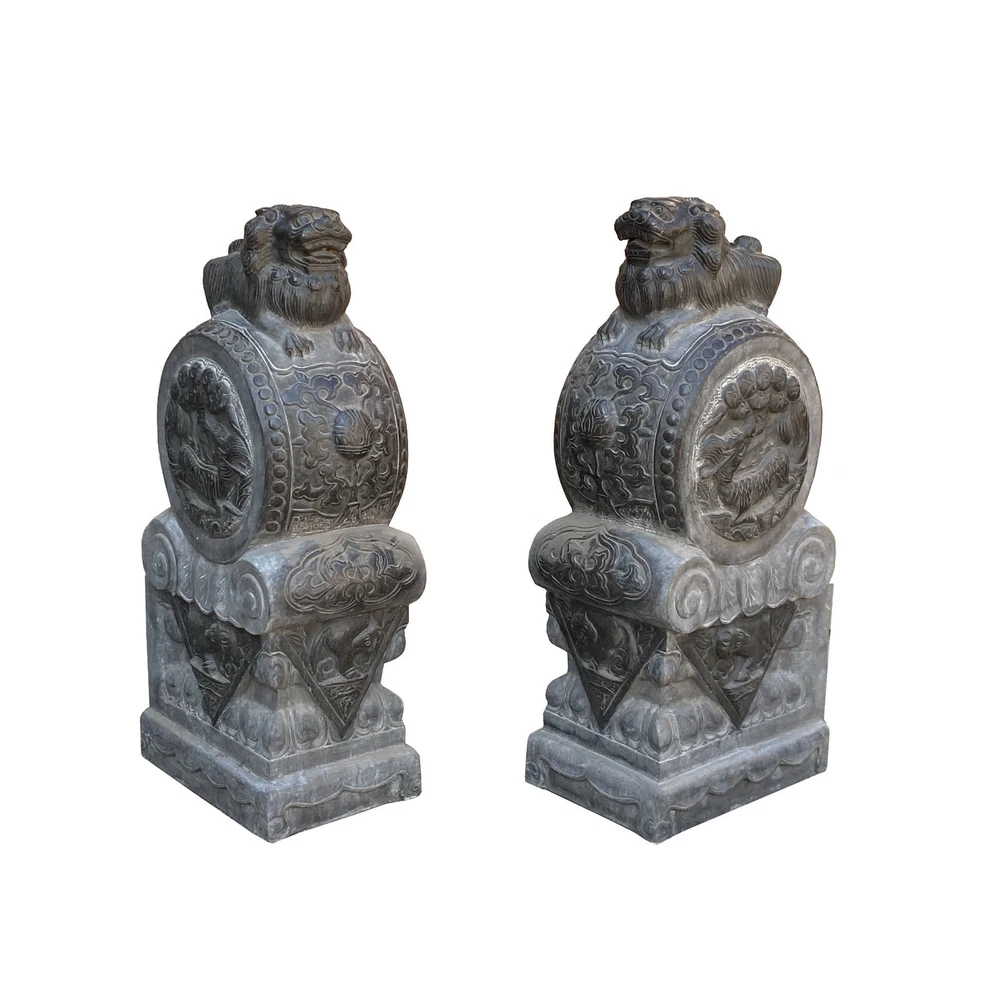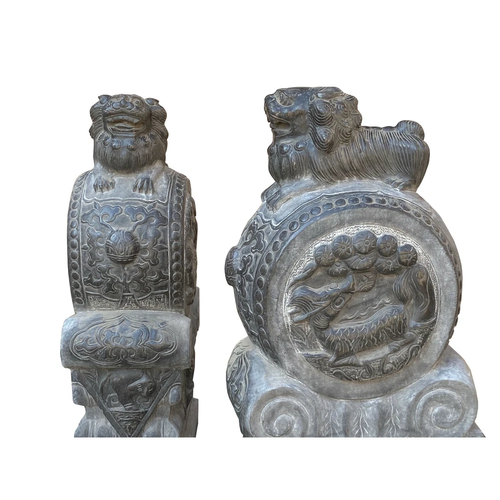 Chinese Pair Black Gray Stone Fengshui Foo Dogs Drum Statues cs7219 DESCRIPTION This is a pair of traditional Chinese door block statues at the front door. They have a Fengshui purpose as well as a door base of the wooden doors. It is a charm meaningful Fengshui statue at the home or as a decorative piece in the garden. This style of statue was the origin in Beijing. The base is carved with a petal pattern. The round drum is supported with a ribbon accent and a carved floral pattern. The surface is finished in distressed dirt marks style. Dimensions: w9.5" x d15" x h32" each Origin: China Material: Stone Condition: hand-carved, natural stone marks, edge chips, dirt. Shipping Payment Return Contact Us Shipping Payment Return Contact Us US domestic continental buyer of 48 state pays listed shipping charge for curbside delivery. Customer from Hawaii, Alaska, US Island, Florida Key West and Canada pays extra Shipping cost. Insurance and handling charge are included in the shipping cost. Curbside - trucker drops off the pallet roadside of your location. We normally ship within 5 to 7 business days after payment, usually sooner. When your shipment is delivered, carefully inspect the outside of the packaging before the delivery personnel leave. It is important to clearly indicate if there is any visible damage to the packaging or items on the delivery paperwork. Carriers usually do not honor concealed damage claims so it is crucial to clearly indicate any visible damage to the packaging or items on the delivery paperwork. In-store pickup is highly welcomed if you are in San Francisco Bay Area (No charged) White Glove In-house Delivery service can be arranged - estimate an additional $500 -$700 based on the furniture size and volume. The Shipping company needs to accumulate shipments to move from coast to coast, so please understand the transit time is about 6 - 8 weeks. For customer who are looking to buy multiple items, we can do combine shipping - several items on the same pallet or small item inside the largest items as long as it can fit in. Global shipping is available, please contact us. We accept Paypal and all major credit card (Visa, Master, American Express and Discover) For internatinal customer, the easiest way is to pay by Paypal, we will only ship to Paypal comfimed address. - In the event that you would like to return your purchase, we allow returns that are processed within the defined return date (the return date is to be found in the return policy/shipping and handling section) - Please contact us for a return authorization and the return shipping address - We advise you to use a reputable carrier service when returning your goods. Please pack all returns appropriately. - Buyer may be responsible for round trip shipping. Damage Claim: For Curbside trucking shipment, please check the product is in good condition before you sign the release paper and accept the shipment. Report to the driver and write a note on the shipping document if there is any damage. Take photos for the record. We are not responsible for any conceded damage reported afterward. Customer is responsible to report any damage as soon as possible after receiving the item, All packing material should be kept for damage claim. We will not responsible for any damage cost if damage claim cannot be filed to the insurance company due to customer mistake " did not keep the original packaging material and box" If you have any question, please contact us via ebay. We usually respond within 10 min during office hour. Monday ~ Sunday (7days 10.00 am till 6.00 pm). See our other items This is a pair of traditional Chinese door block statues at the front door. They have a Fengshui purpose as well as a door base of the wooden doors. It is a charm meaningful Fengshui statue at the home or as a decorative piece in the garden. This style of statue was the origin in Beijing. The base is carved with a petal pattern. The round drum is supported with a ribbon accent and a carved floral pattern. The surface is finished in distressed dirt marks style. Dimensions: w9.5" x d15" x h32" each Origin: China Material: white marble Stone Condition: hand-carved, natural stone marks, edge chips, dirt. Chinese Pair Black Gray Stone Fengshui Foo Dogs Drum Statues cs7219 DESCRIPTION This is a pair of traditional Chinese door block statues at the front door. They have a Fengshui purpose as well as a door base of the wooden doors. It is a charm meaningful Fengshui statue at the home or as a decorative piece in the garden. This style of statue was the origin in Beijing. The base is carved with a petal pattern. The round drum is supported with a ribbon accent and a carved floral pattern. The surface is finished in distressed dirt marks style. Dimensions: w9.5" x d15" x h32" each Origin: China Material: white marble Stone Condition: hand-carved, natural stone marks, edge chips, dirt. Shipping US domestic continental buyer of 48 state pays listed shipping charge for curbside delivery. Customer from Hawaii, Alaska, US Island, Florida Key West and Canada pays extra Shipping cost. Insurance and handling charge are included in the shipping cost. Curbside - trucker drops off the pallet roadside of your location. We normally ship within 5 to 7 business days after payment, usually sooner. When your shipment is delivered, carefully inspect the outside of the packaging before the delivery personnel leave. It is important to clearly indicate if there is any visible damage to the packaging or items on the delivery paperwork. Carriers usually do not honor concealed damage claims so it is crucial to clearly indicate any visible damage to the packaging or items on the delivery paperwork. In-store pickup is highly welcomed if you are in San Francisco Bay Area (No charged) White Glove In-house Delivery service can be arranged - estimate an additional $500 -$700 based on the furniture size and volume. The Shipping company needs to accumulate shipments to move from coast