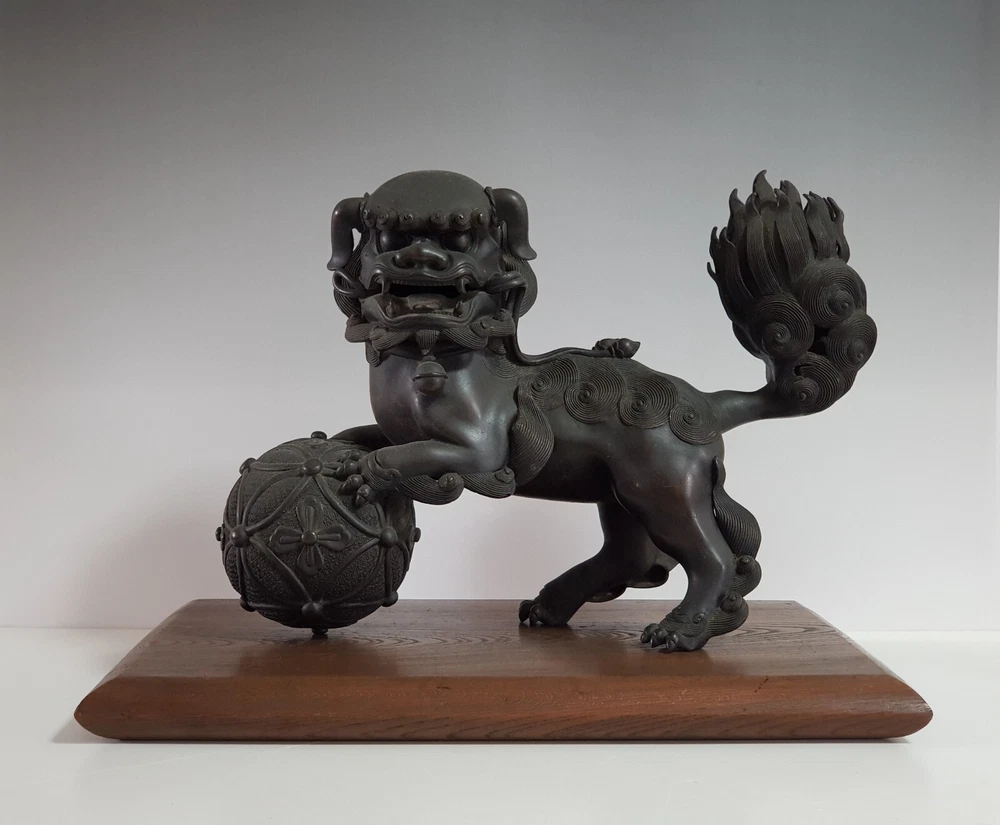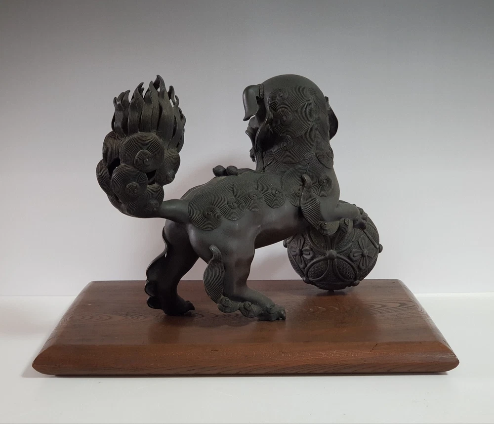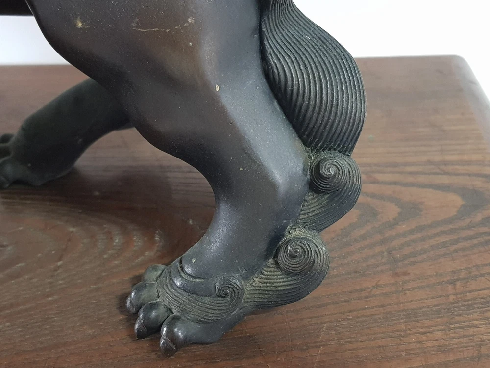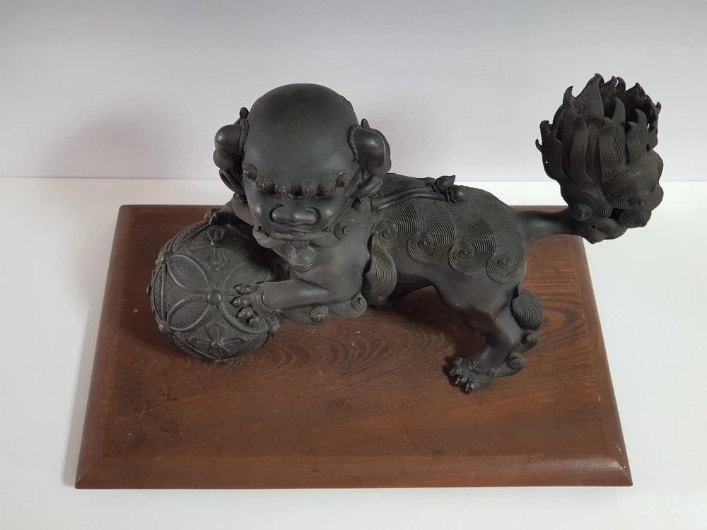 Chinese Qing Dynasty Buddhist Lion-shaped Bronze Statue D:41cm W:8103g 古銅製 獅子 置物 木座台付き 時代唐物 D:41cm W:8103g Please look at the photos carefully and if you have any questions, contact me before bidding. As our collection's descriptions based on my own opinion, we cannot return it for reasons of different age. Thank you very much!