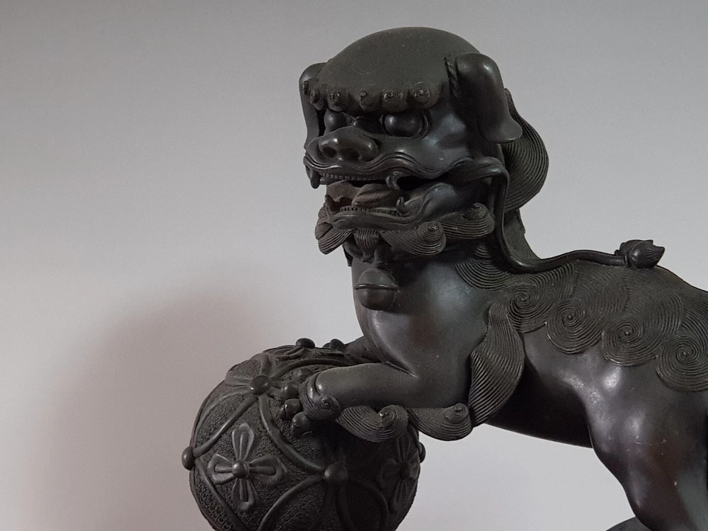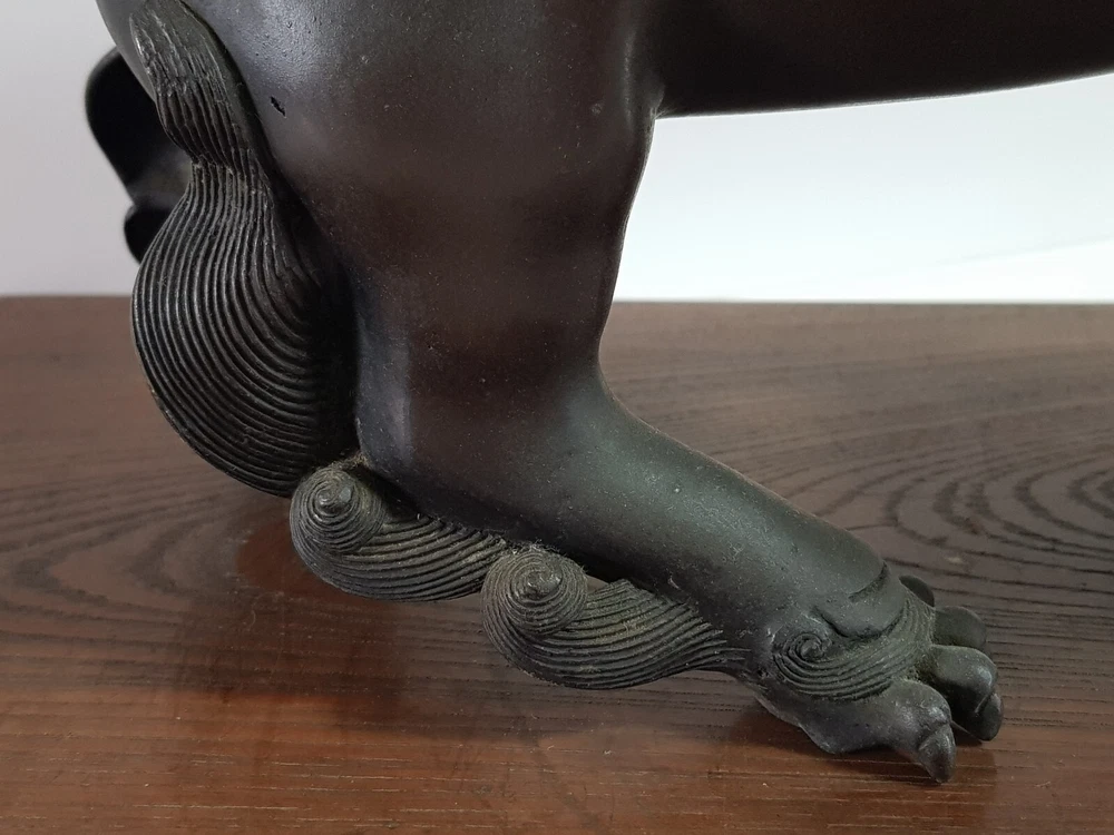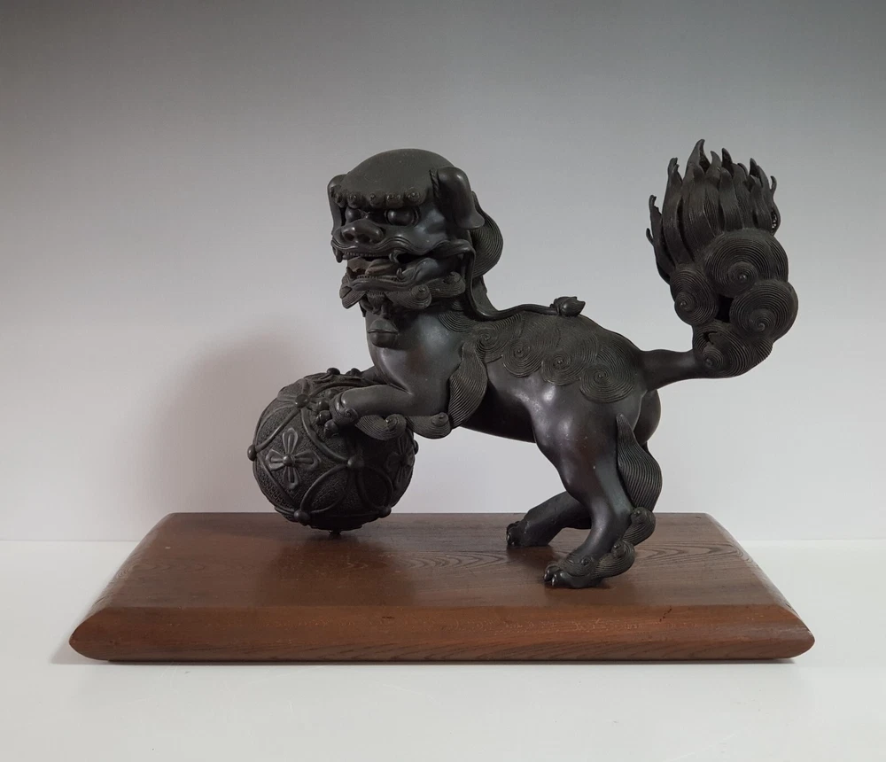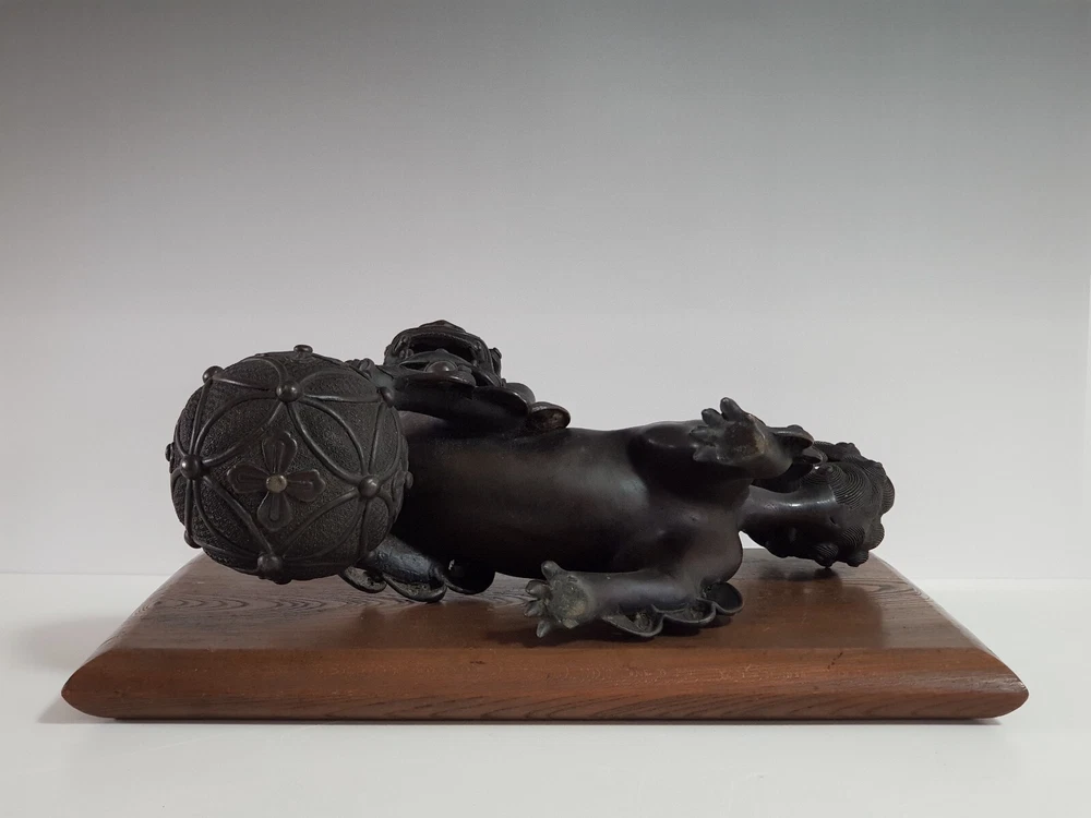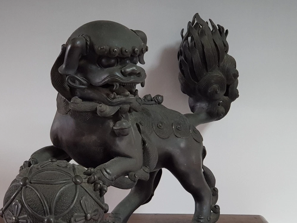 Chinese Qing Dynasty Buddhist Lion-shaped Bronze Statue D:41cm W:8103g 古銅製 獅子 置物 木座台付き 時代唐物 D:41cm W:8103g Please look at the photos carefully and if you have any questions, contact me before bidding. As our collection's descriptions based on my own opinion, we cannot return it for reasons of different age. Thank you very much!