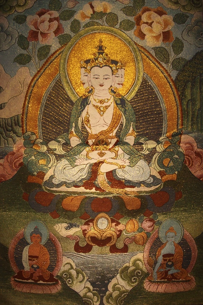Chinese Tibet Buddhist embroidery Brocade Tapis Thangka Tangka Mahavairocana