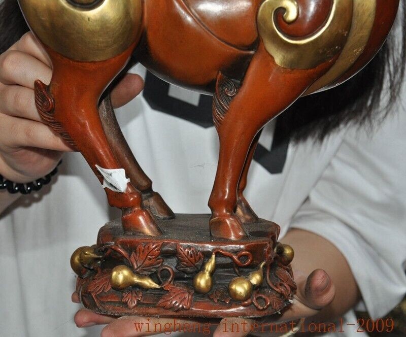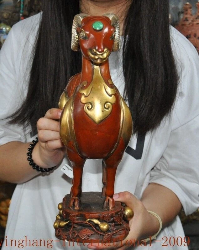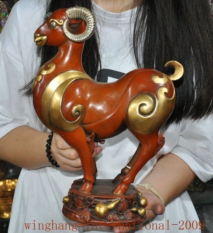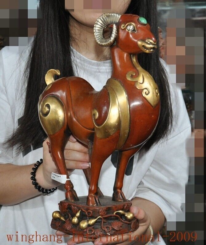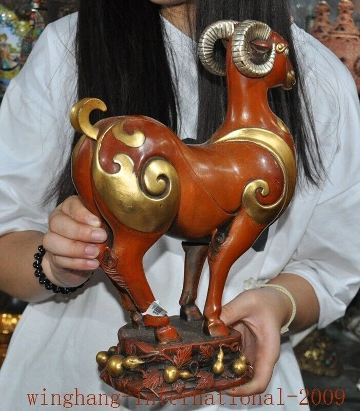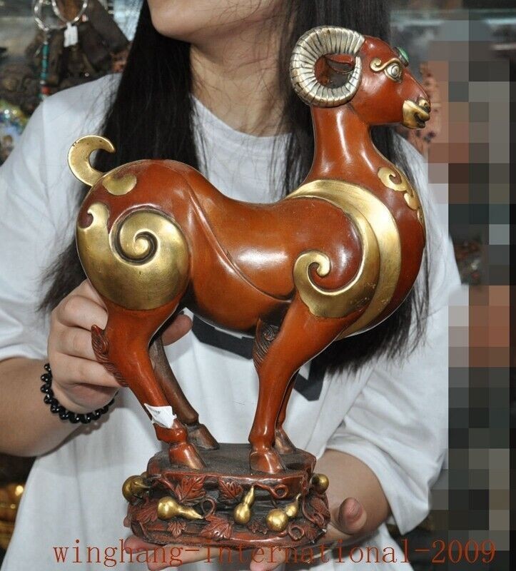 Chinese ancient bronze Gilt Fengshui wealth Zodiac Year animal sheep statue Size: Height : 13.2 inch .Long : 9.2 inch . breadth : 4.4 inch Size: Height:33 CM .Long:23 CM . breadth:11 CM Weight: 4.5 KG----included the weight of packing materials Materials : bronze Gilt Condition: Good condition Origin: China