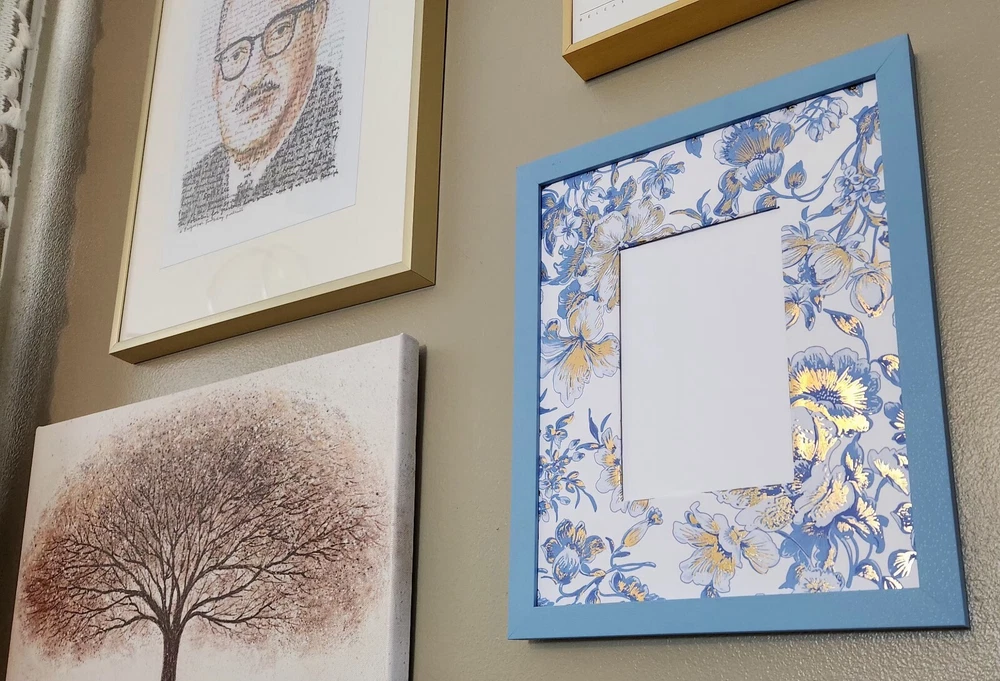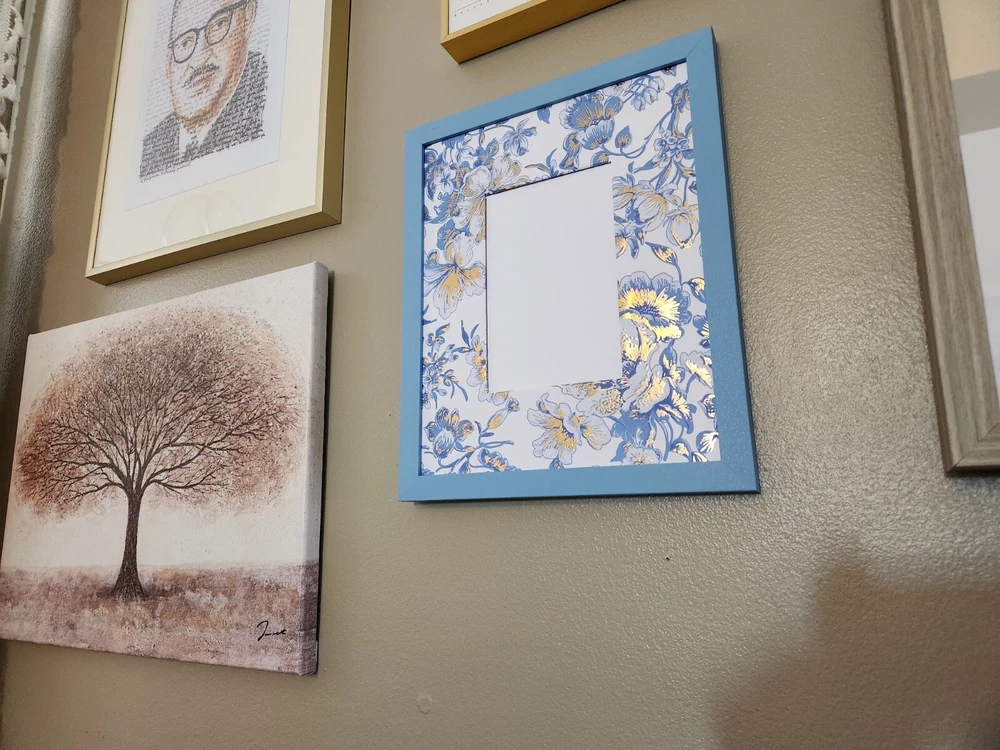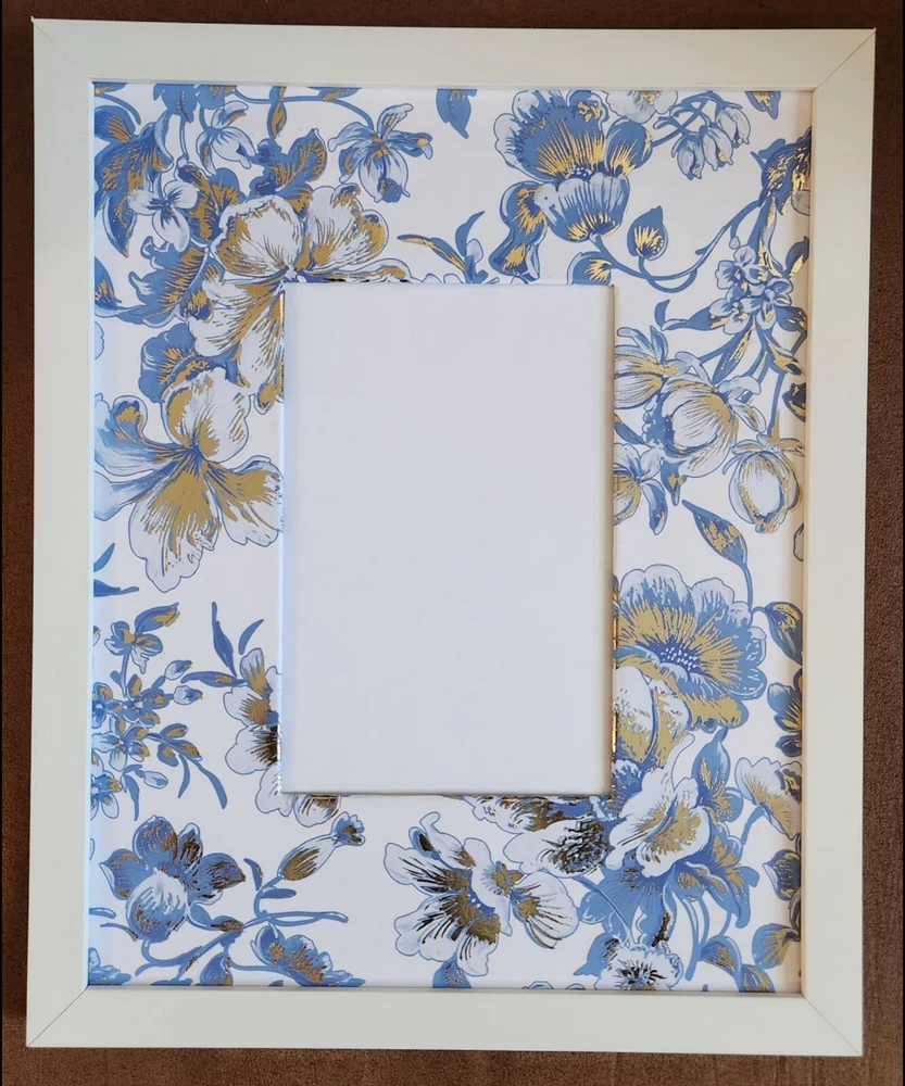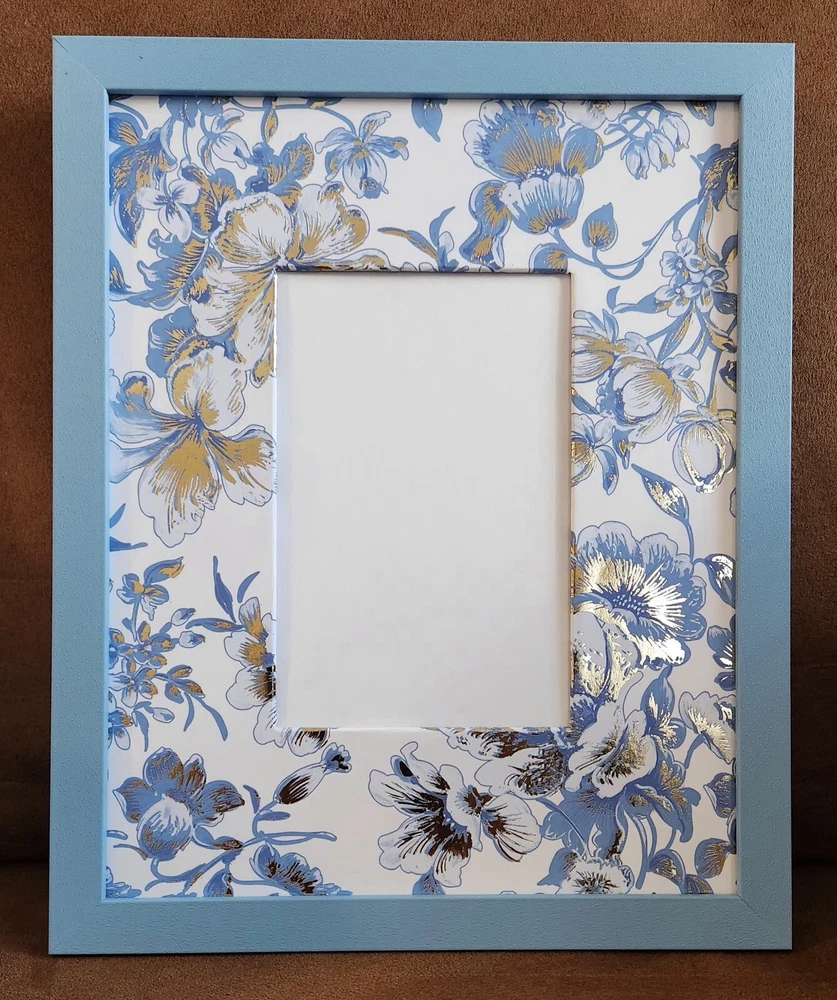 Bring timeless elegance to your home with this stunning Chinoiserie-inspired frame mat. Featuring a luxurious blue and gold floral pattern, this 8x10 handcrafted mat is perfect for framing your favorite 4x6 photo. The intricate details and rich hues evoke a sense of sophistication, making it a perfect addition to your decor or a thoughtful gift for loved ones. Frame your memories with timeless Chinoiserie charm—order now! **** FEATURES: 《 High-Quality Paper Wrap 》 Expertly hand-wrapped for a flawless and polished finish. 《 Chinoiserie-Inspired Design 》 A beautiful combination of blue and gold florals that add a touch of classic elegance. 《 Size 》 Fits an 8x10 frame with a 4x6 photo window. 《 Limited Quantity 》 Each mat is handcrafted, ensuring a unique and exclusive piece. **** #Chinoiserie frame mat #blue and gold floral photo mat #8x10 picture frame mat #elegant photo display #sophisticated home decor #paper-wrapped frame mat #luxury floral mat #timeless gift idea #handcrafted decor #blue and gold frame mat #4x6 photo #home decor #picture frame #floraldesign #wall art