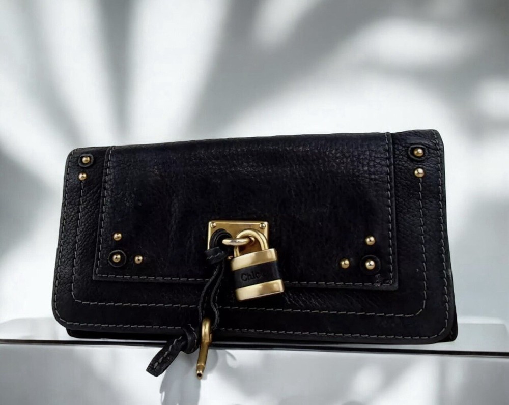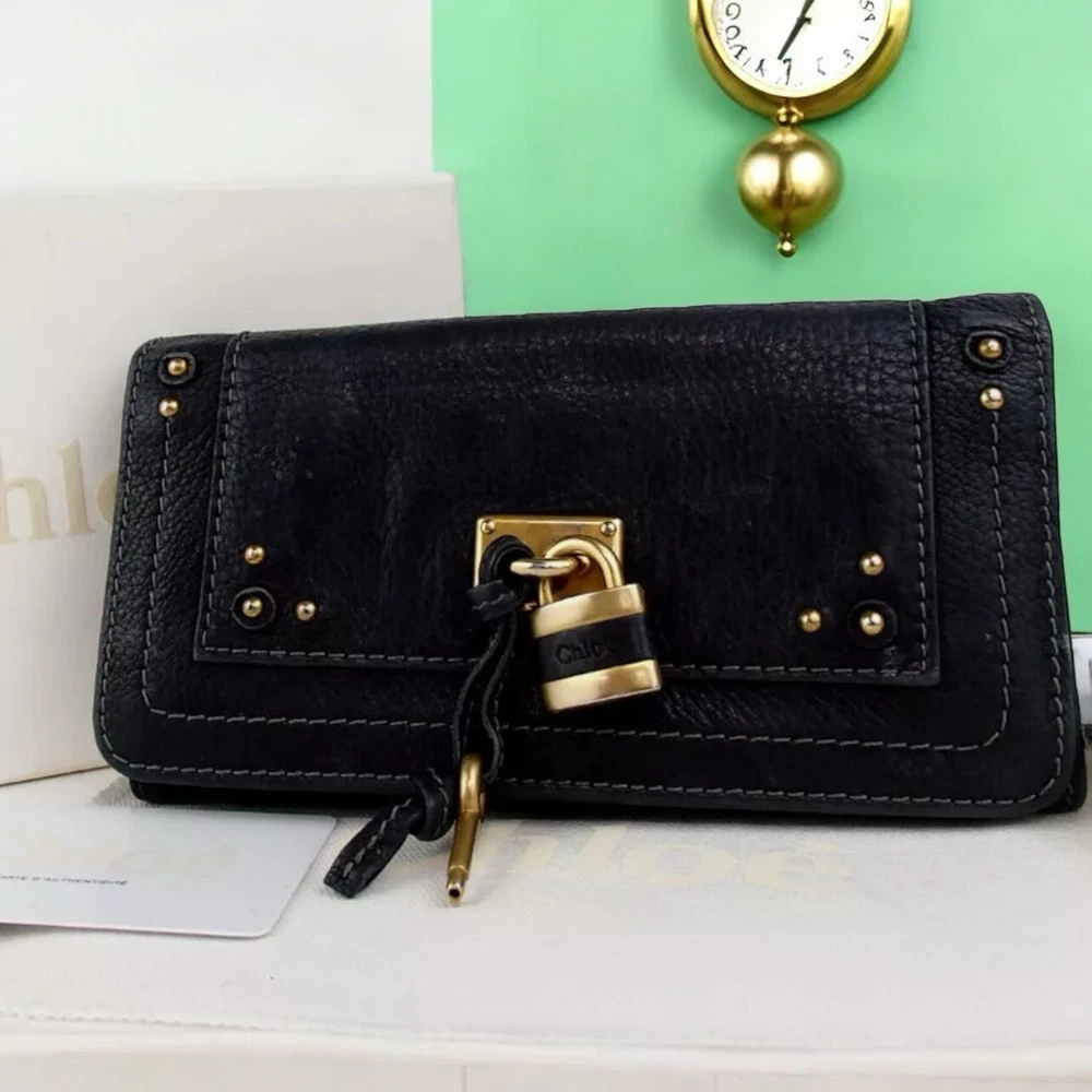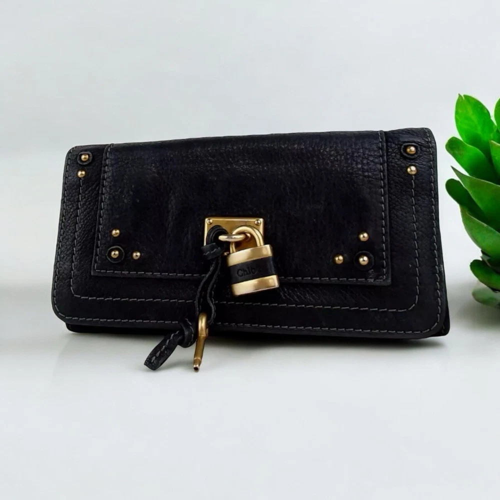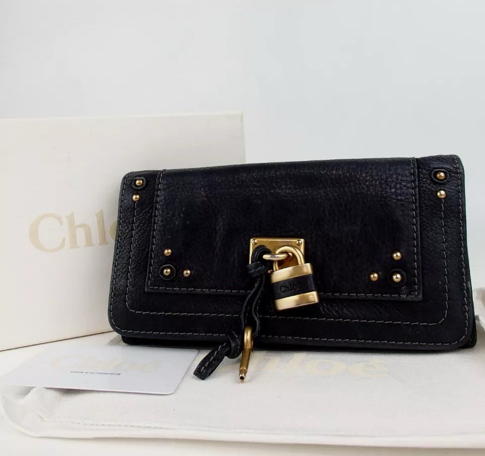 -Condition: Pre-owned ✅ ; in excellent condition -Comes with box and dust bag ❤️ -Minor scratches -Color: Black 🖤 -Signature Chloé Paddington Lock & Key 😍🔐 -Material: Leather -Separated compartments -Credit card slots -Gold Hardware -Very beautiful wallet ‼️❤️ -Reasonable offers are welcome 🤗