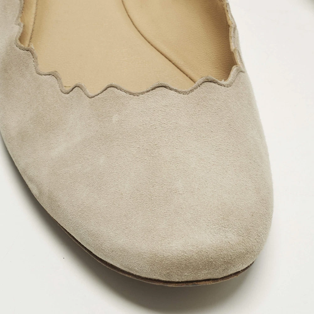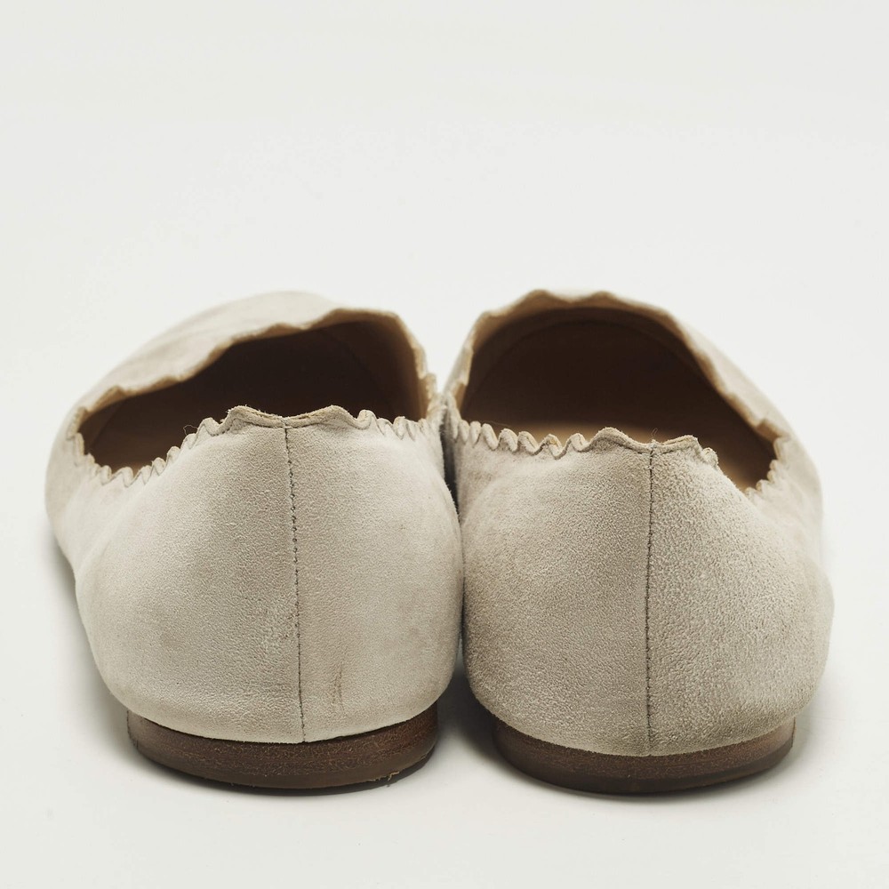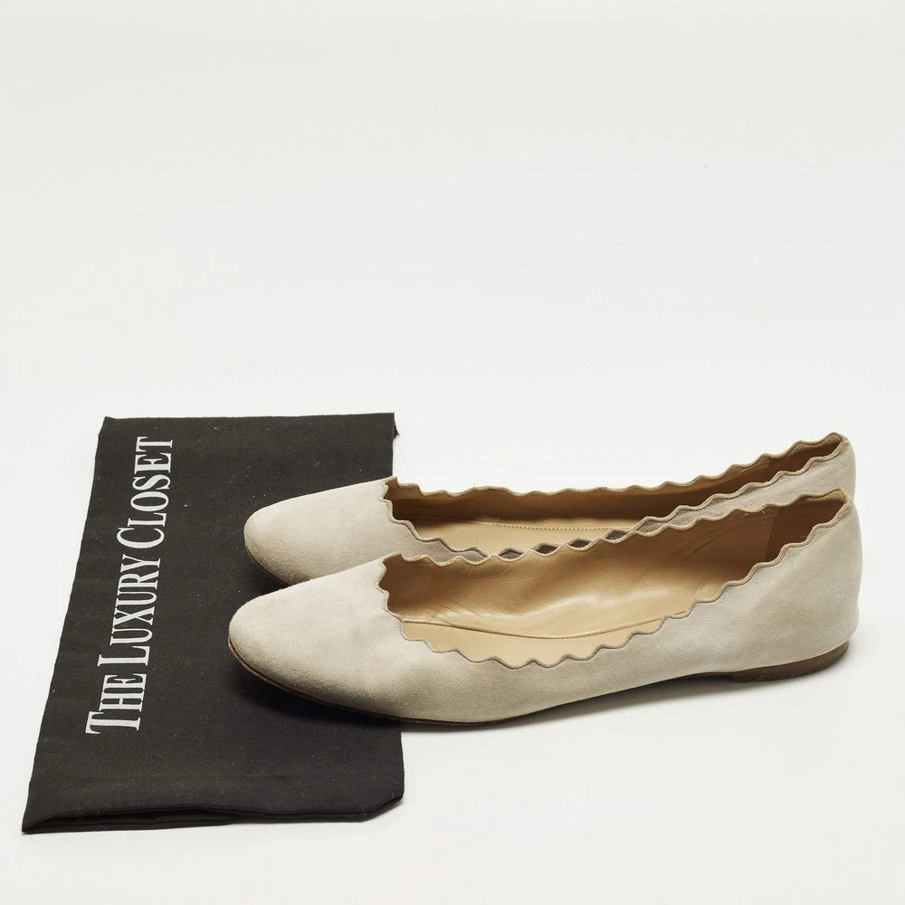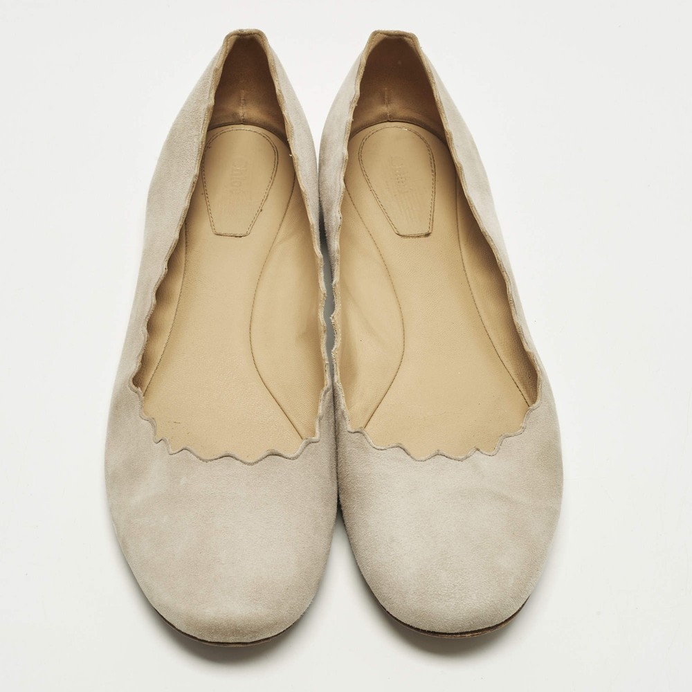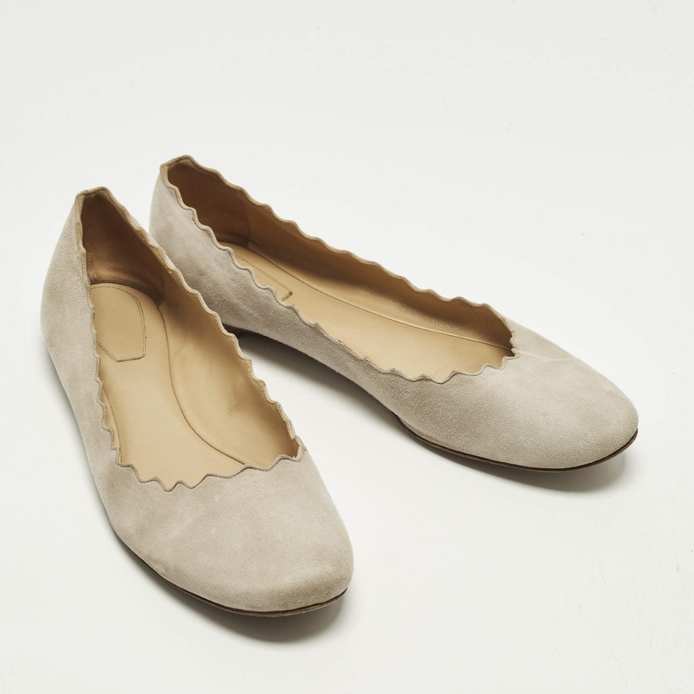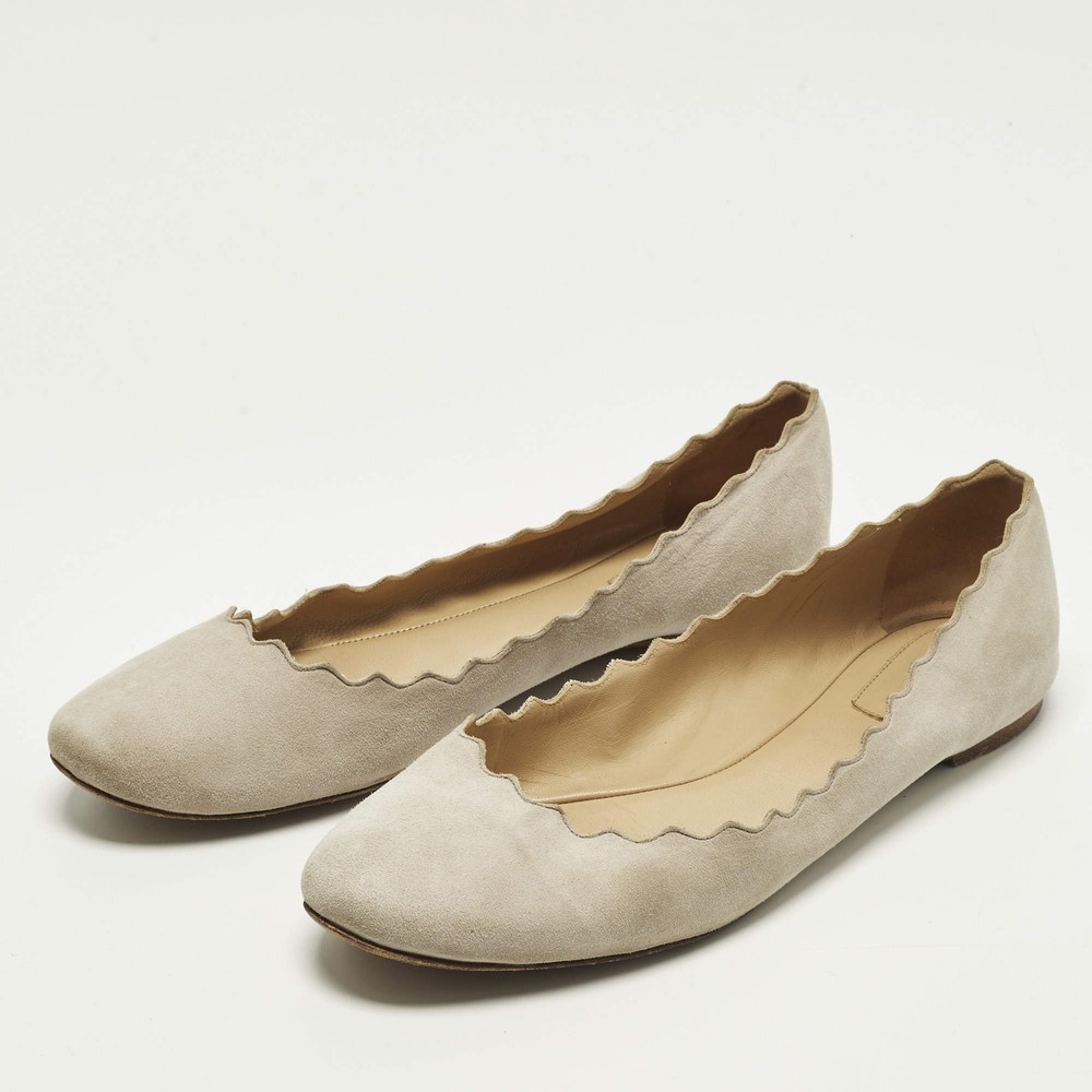 Our eBay Store About Us Contact Us Add to Favorite Sellers Chloe Lauren Scalloped Size 39.5 Grey Suede Ballet Flats Chloé’s Lauren ballet flats are recognized for their soft scalloped edges that frame the foot with a delicate finish. Grey suede enhances the graceful look while keeping the style versatile for daily wear. They complement everything from flowing dresses to tailored trousers. Product Details Brand Chloe Color Light Grey Includes The Luxury Closet Packaging Outsole Length 27cm Outsole Width 8 cm Size 39.5 Certified by The Luxury Closet This item has gone through a detailed authentication process overseen by our experts. We offer a lifetime guarantee of authenticity on all our items. How We Check The in-house team of experts at The Luxury Closet is highly trained to verify the authenticity and the condition of the luxury products. They ensure that only 100% authentic items are put on sale.The evaluation process is unique with its own mix of assessment criteria and differs according to the category. Each item is evaluated based on the following combination of hallmarks, hardware, stitching, symmetry, material, craftsmanship, stamping, codes, hologram stickers, and packaging. Our authenticators also check if the items have been modified or amended (e.g., aftermarket diamonds, replaced batteries, repaired bags, etc.) International Buyers Import duties, taxes and charges are not included in the item price. These charges are the buyers responsibility. Please check with your country’s customs office to determine what these additional cost will be prior to buying.