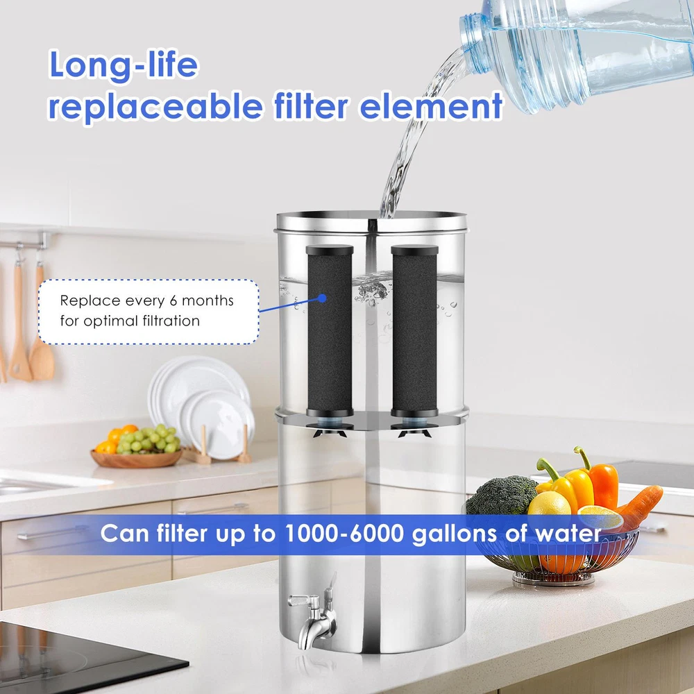 Chlorine and Fluorine Water Filter Stainless Steel Drinking Water Filter Bullet Points: Cutting-Edge Filtration: With our innovative 8-stage Filtration and composite filtration technology, our Water Filter System reduces most pollutants, as well as rust, sediment, organic matter, and heavy metals, while intercepting harmful fluorine and chlorine for cleaner, healthier water. Fluorine Reduction: This Water Filter System features advanced fluorine removal material, and eliminates up to 90% of fluorine, ensuring water safety with no harm to human health. Seamless Setup: Equipped with a comprehensive accessory kit, the water filtering system boasts a sturdy build and food-grade stainless steel exterior for a secure and non-slip installation. Enjoy an effortless setup complemented by a water tap, ensuring optimal user convenience and satisfaction. Energy Saving: Save energy while delightful purified water both indoors and outdoors with this water filter system. No electricity is needed. Fill the upper container with tap water and the lower container provides clean water. Perfect for outdoors. Ensure Hydration Quality: Our water filter system uses advanced filtration technology and replaceable filters to provide up to 6,000 gallons of pure water, with 2 white fluorine and 2 black carbon filters. Replacing filters every 6 months ensures optimal performance for all water types. Purify your water with our Water Filter System for Home! Our composite filtration technology and advanced fluorine removal material provide clean water for indoor and outdoor use. Plus, our product comes with rich accessories and replaceable filters for long-term use. Specifications: A: Material: Stainless steel Capacity: 2.25Gallons Applicable temperature: 32°F -90°F Water rate: 4 gallons/hour Filter life: 6000 mph Packing List: 1 *water tank 2* filter element (CB and UF 6000 Gallons) 1* stainless steel faucet 1* stainless steel bottom covered with rubber bracket 2* fluorine filter element B: Material: Stainless steel Capacity: 2.25 Gallons Packing List: 1* water tank 2* filter element (CB and UF 6000 Gallons) 1* stainless steel faucet 1* stainless steel bottom covered with rubber bracket 1.You can make a Credit payment via Paypal.Paypal will let you use MasterCard,Visa to pay. 2.Payment should be completed within 5 days after auction closed, or unpaid dispute will be filed for an closing auction.An unpaid case will be filled after 4 days. ● We strive for 100% customer satisfaction ! ● Positive Feedback is very important to us. ● We hope that you contact us immediately BEFORE you give us neutral or negative feedback, so that we can satisfactorily address your concerns. ● We promise to offer the lowest price and high quality produce. Dear buyers : ● Welcome to my store ! ● Your satisfaction is our top goal,we appreciate your patronizing. ● If you have any questions, please contact us before leave negative or neutral feedback, we will try our best to solve the issue to your satisfaction, thanks ! ● If you are satisfied with our service, please rate the details of the transaction (Detailed Seller Ratings) on eBay. ● Please always talk to us via ebay Message. ● We appreciate your business and look forward to growing our e-Bay sales with satisfied customers.
