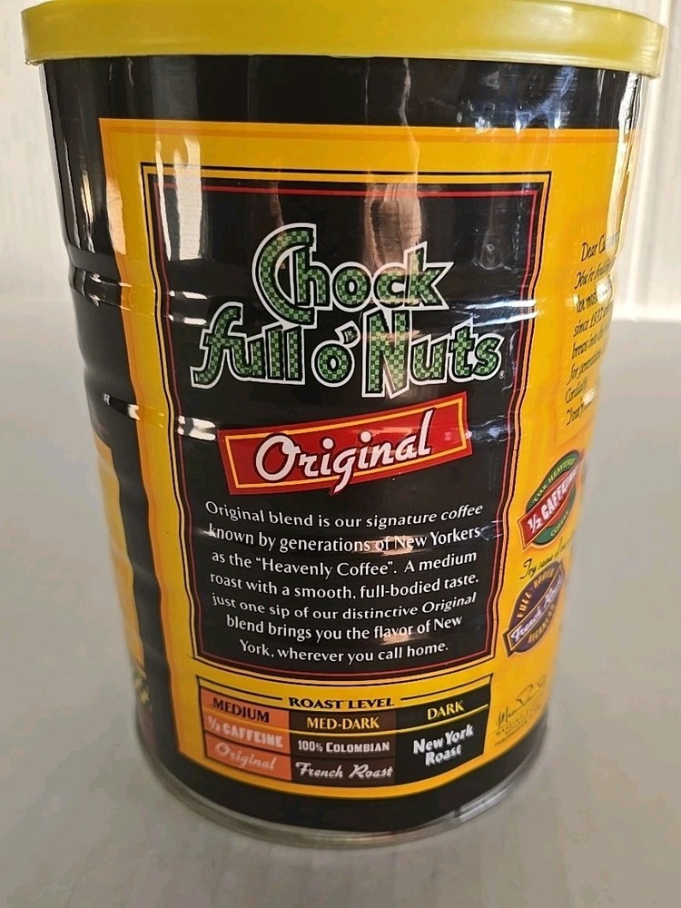 The Chock Full O' Nuts Coffee Tin is a vintage collectible featuring the iconic brand's logo. Made in the United States, this 11.3oz tin is a rare find as it has never been opened, making it a valuable addition to any coffee or tea advertising memorabilia collection. Perfect for collectors interested in the theme of coffee and tea, this original piece captures a piece of Americana nostalgia.